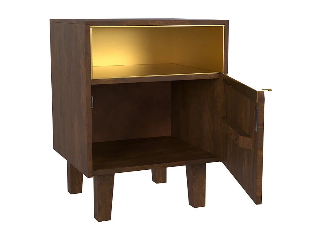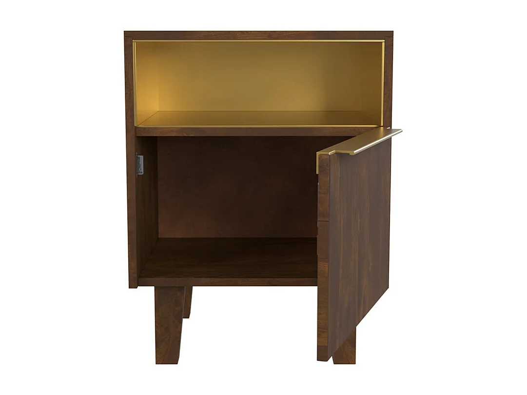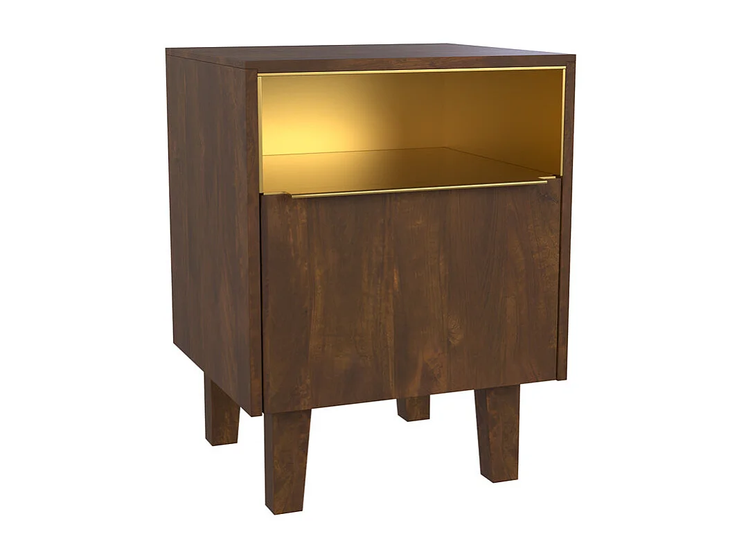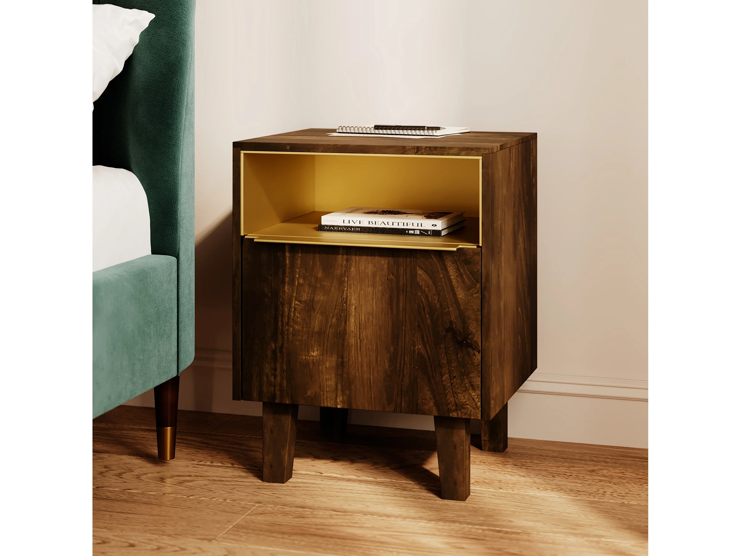 Comodino in legno con dettagli dorati, 1 cassetto e 1 anta - Tripoli