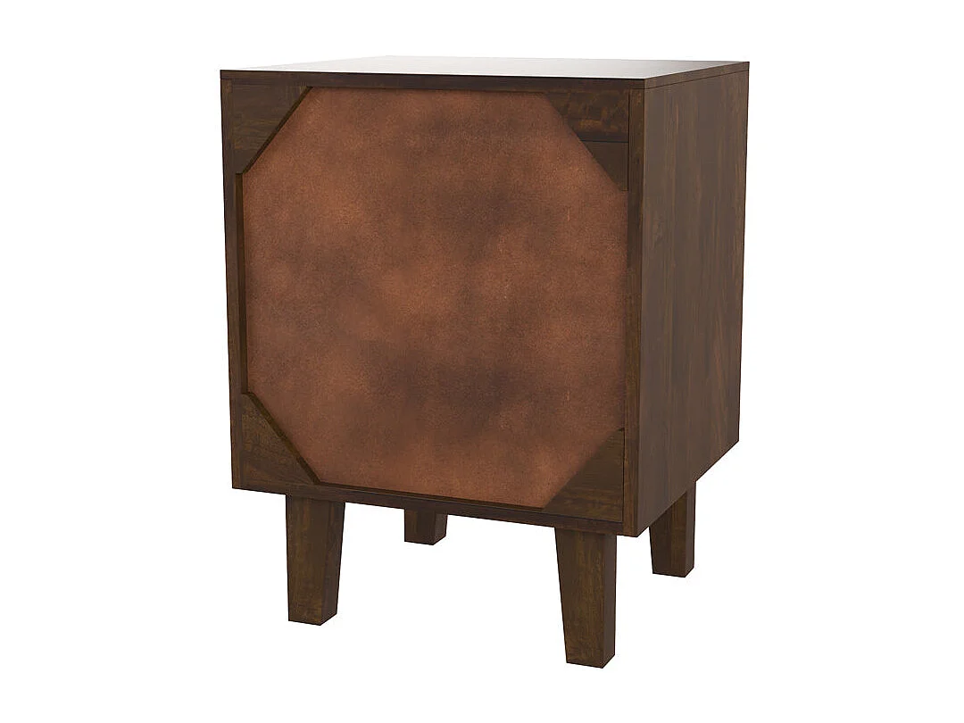 Comodino a 1 cassetto in legno di mango inciso - Tiny