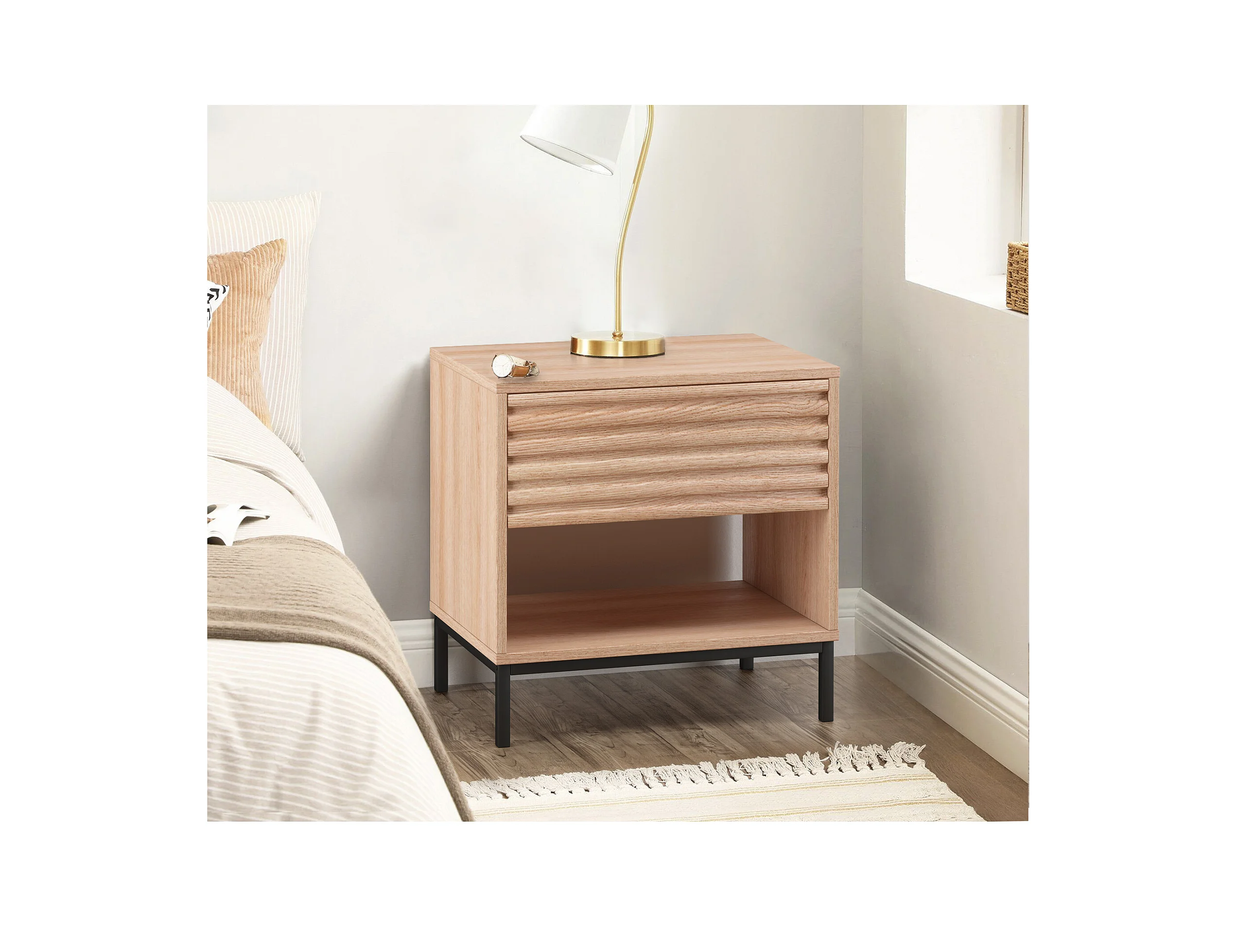 Comodino Nada con 1 cassetto, decoro Hickory.