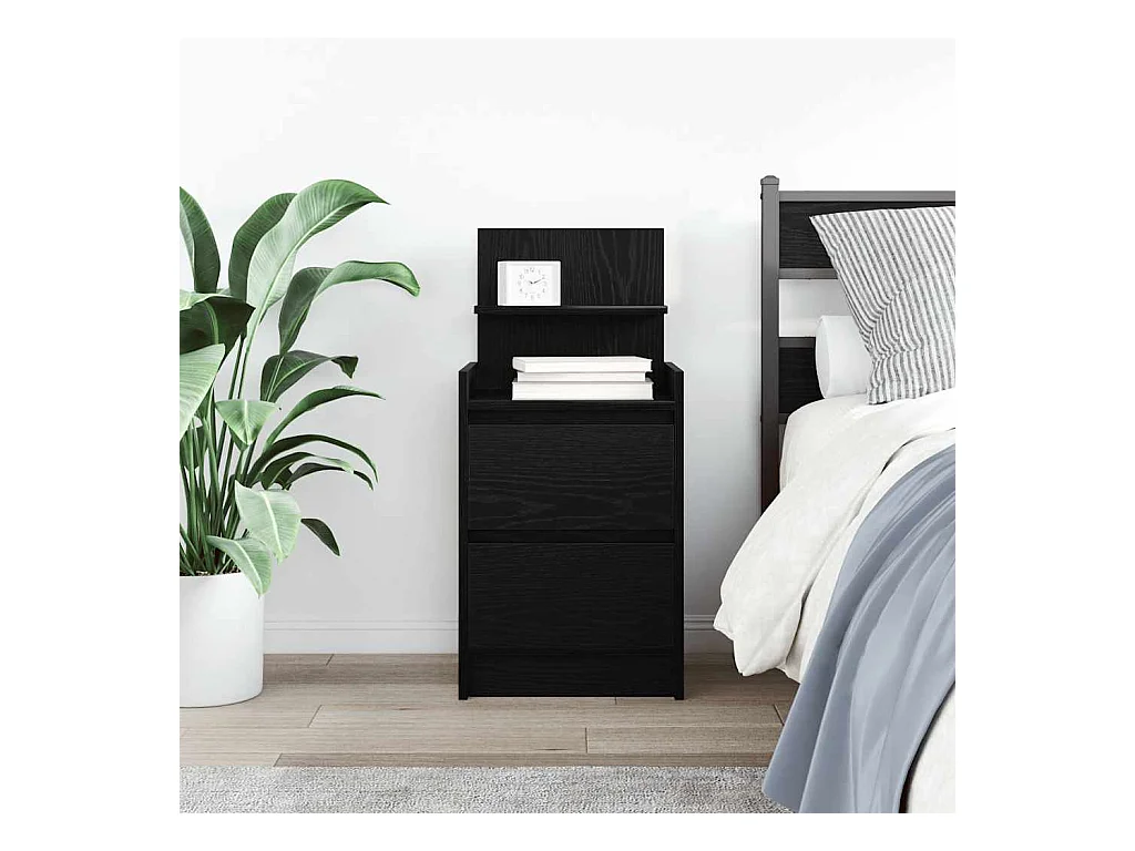 Comodino in rovere nero 34 x 30 x 20 cm in legno ingegnerizzato