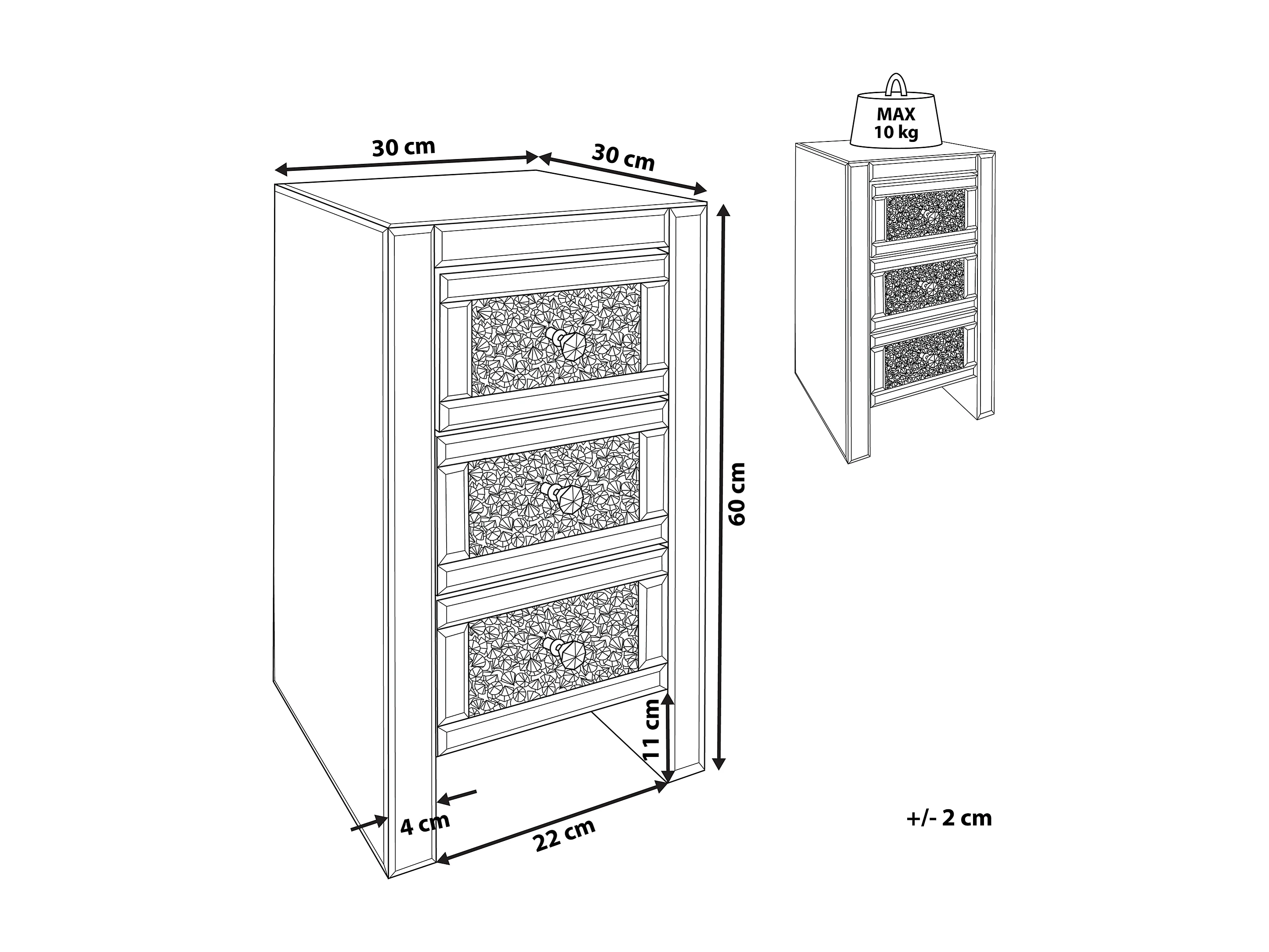 Comodino 3 cassetto LORAY Vetro Argento