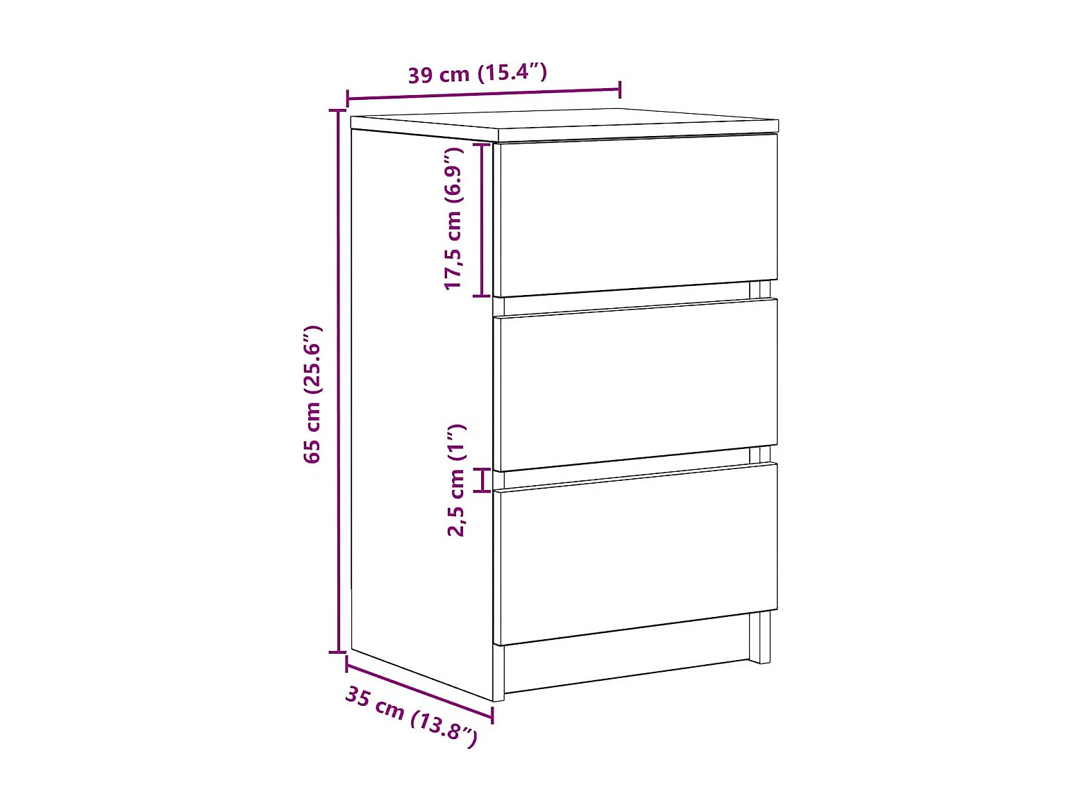 Comodino con 3 Cassetti Grigio Sonoma 39x35x65 cm