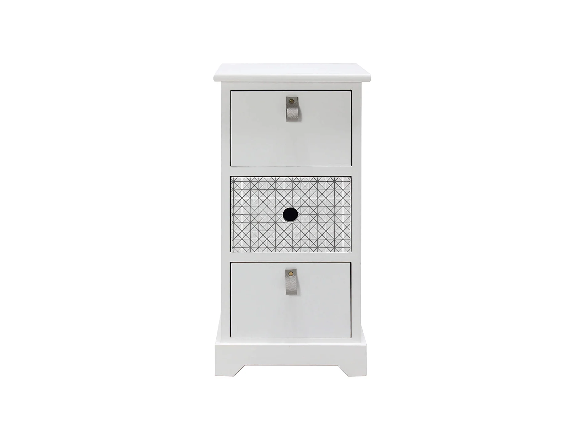 Comodino Cassettiera 3 Cassetti Bianco Legno Retr 59,5x30x25