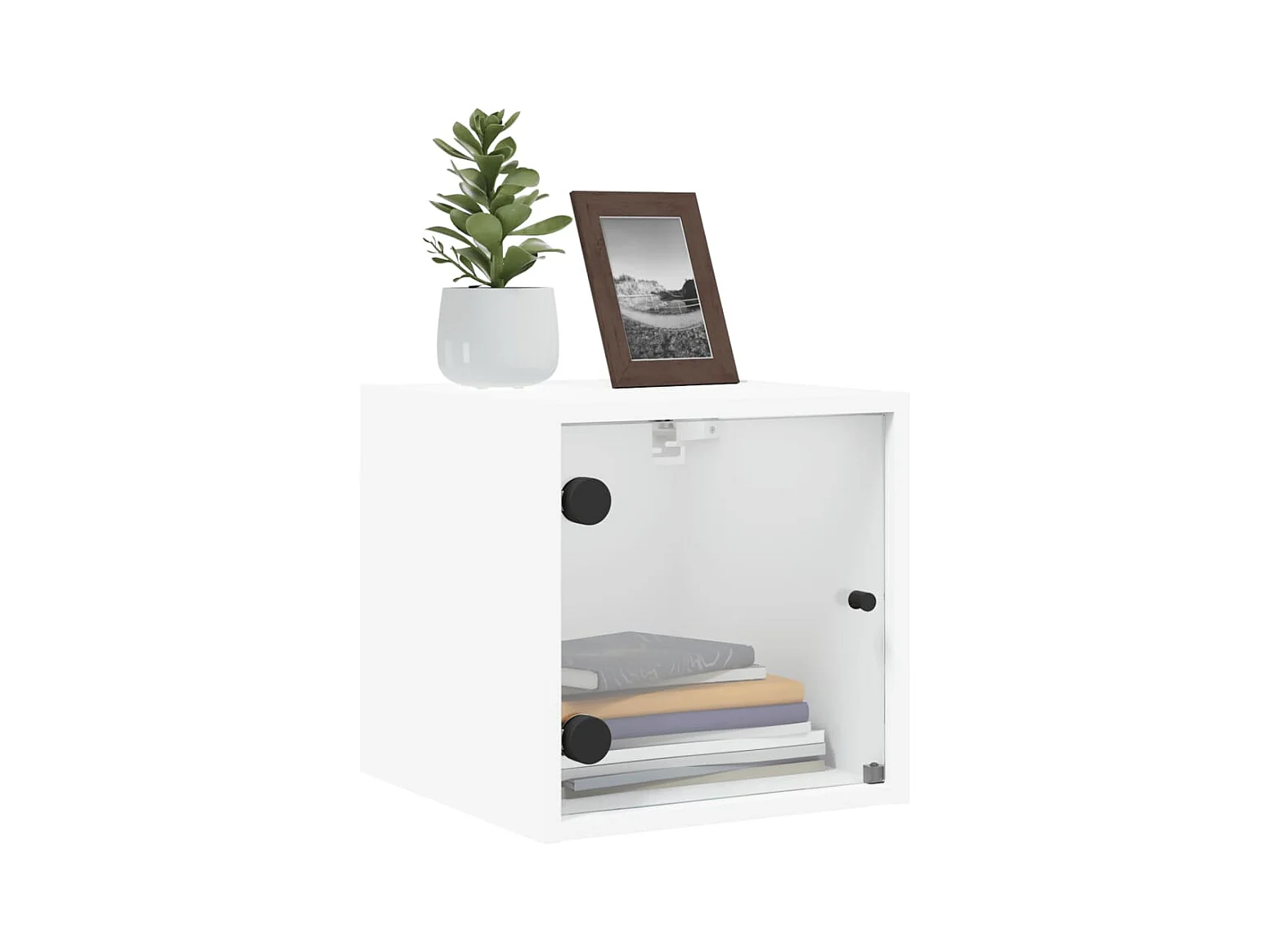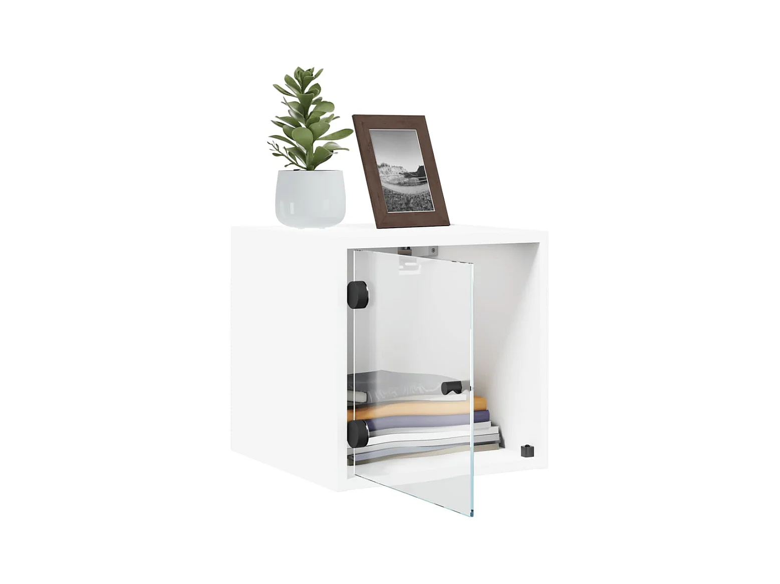 Comodino con Anta in Vetro Bianco 35x37x35 cm