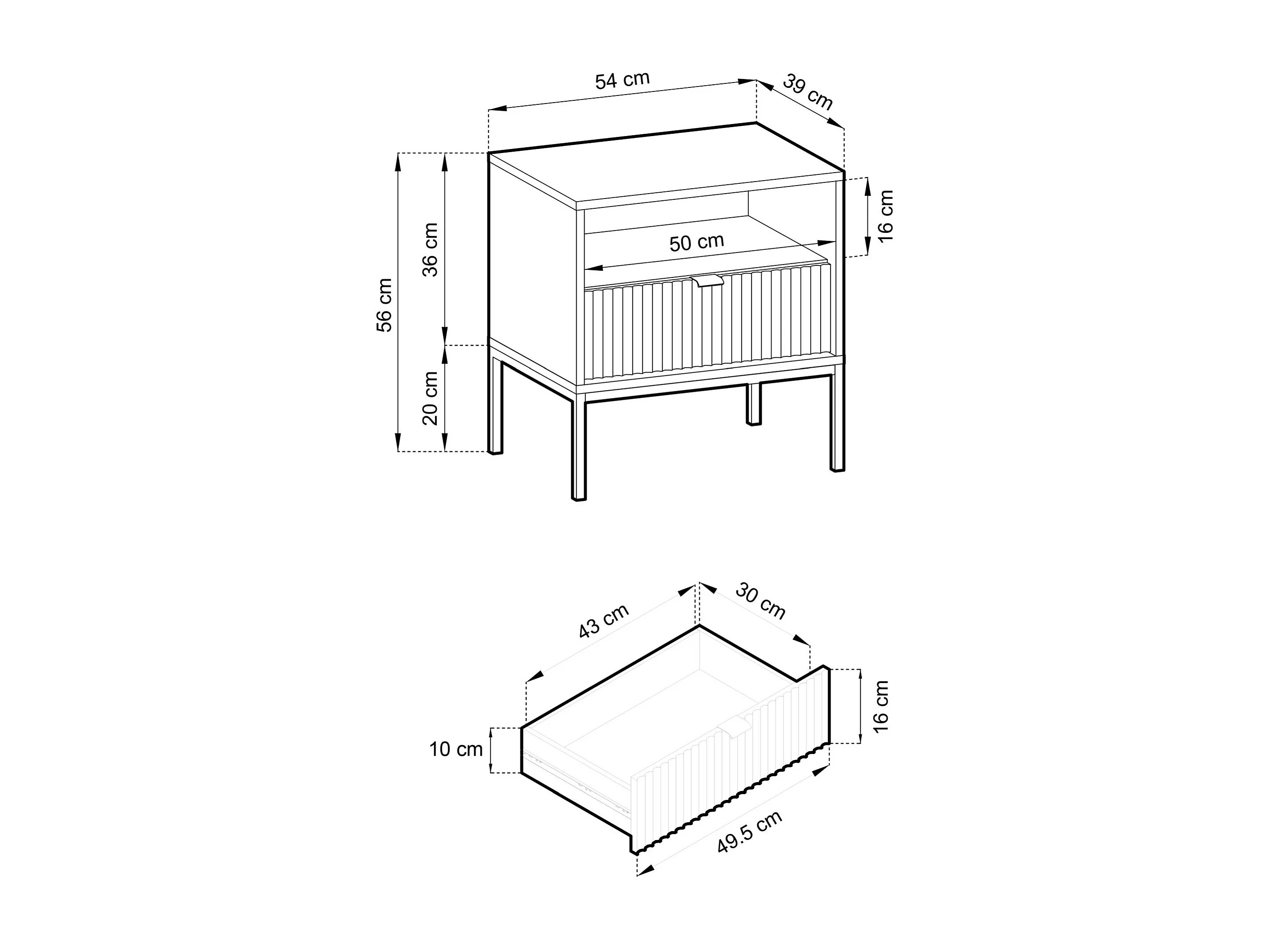 Comodino - 54 cm - con cassetto e doghe - nero - DIVENOS