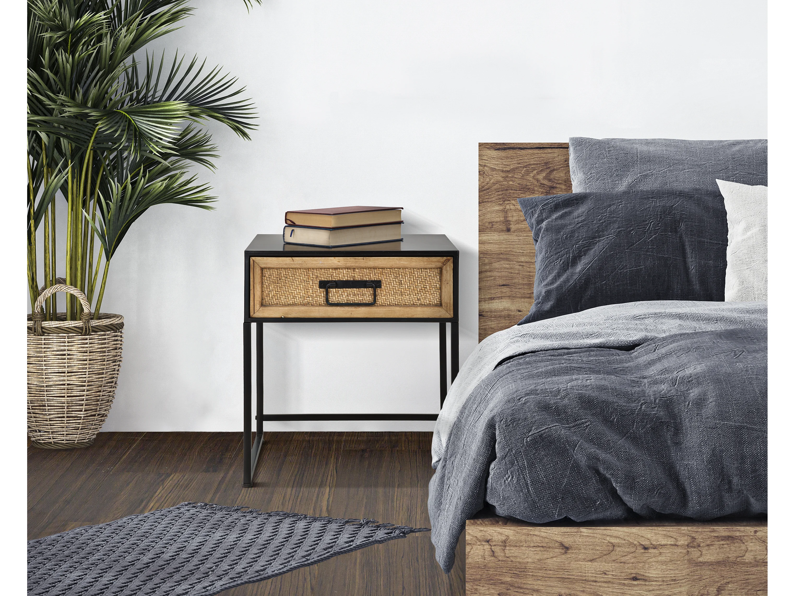 Comodino con cassetto in legno e metallo marrone e nero cm 45x40x51,5