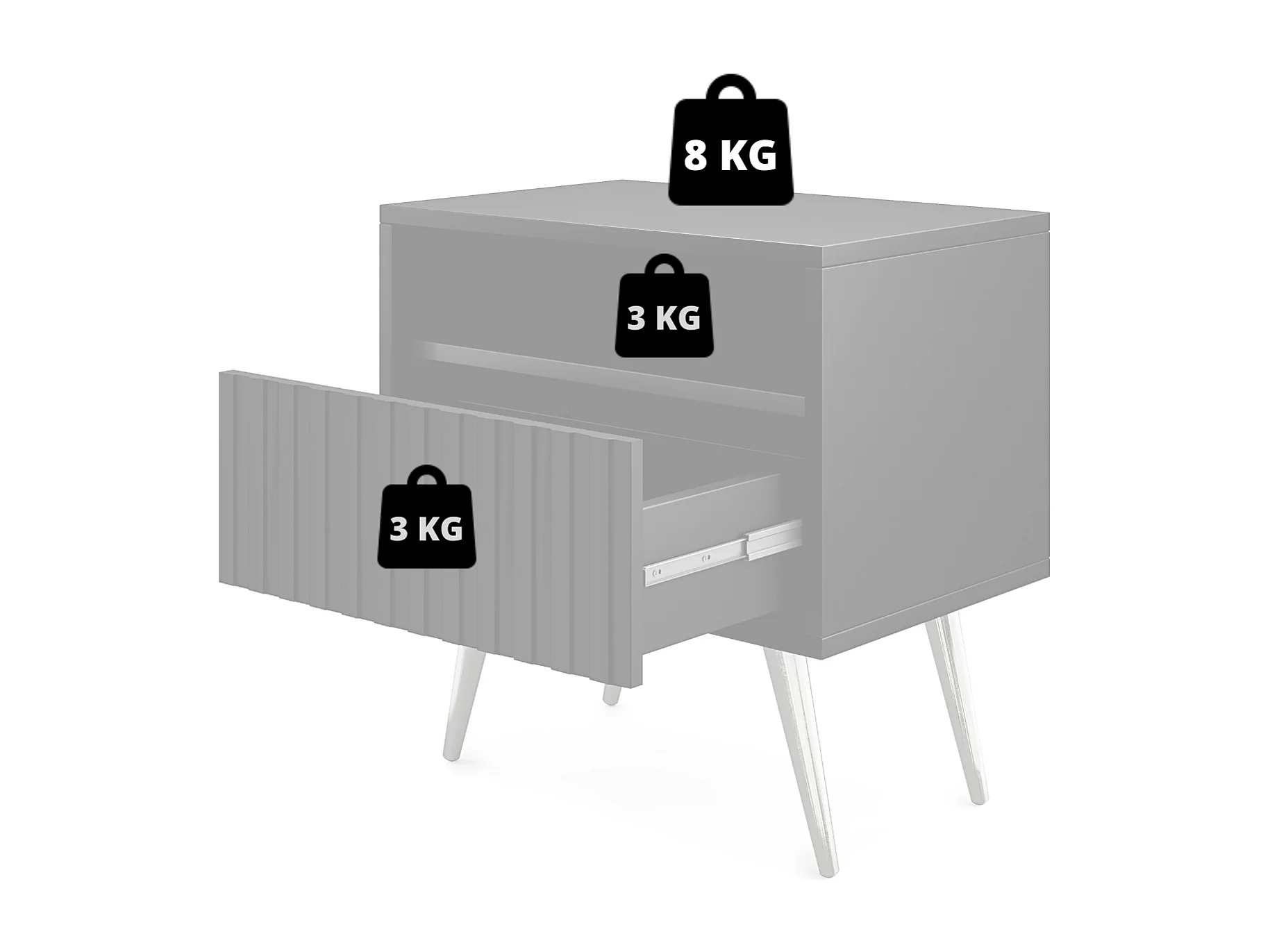 Comodino con frontale a doghe e cassetto – Nero – 50 cm – VELDIO NEW