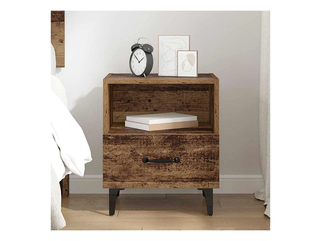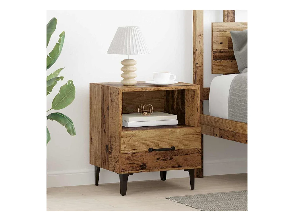 Mobiletto letto con cassetto 2 pezzi Legno antico 40 x 35 x 47,5 cm