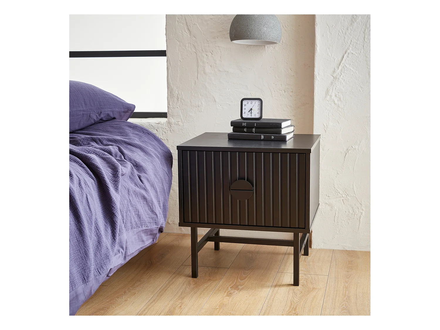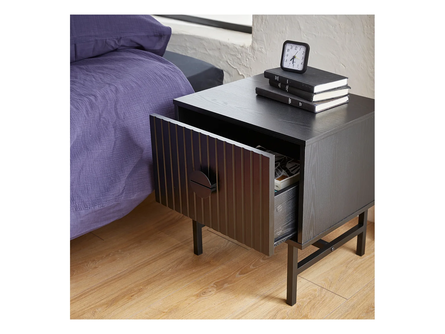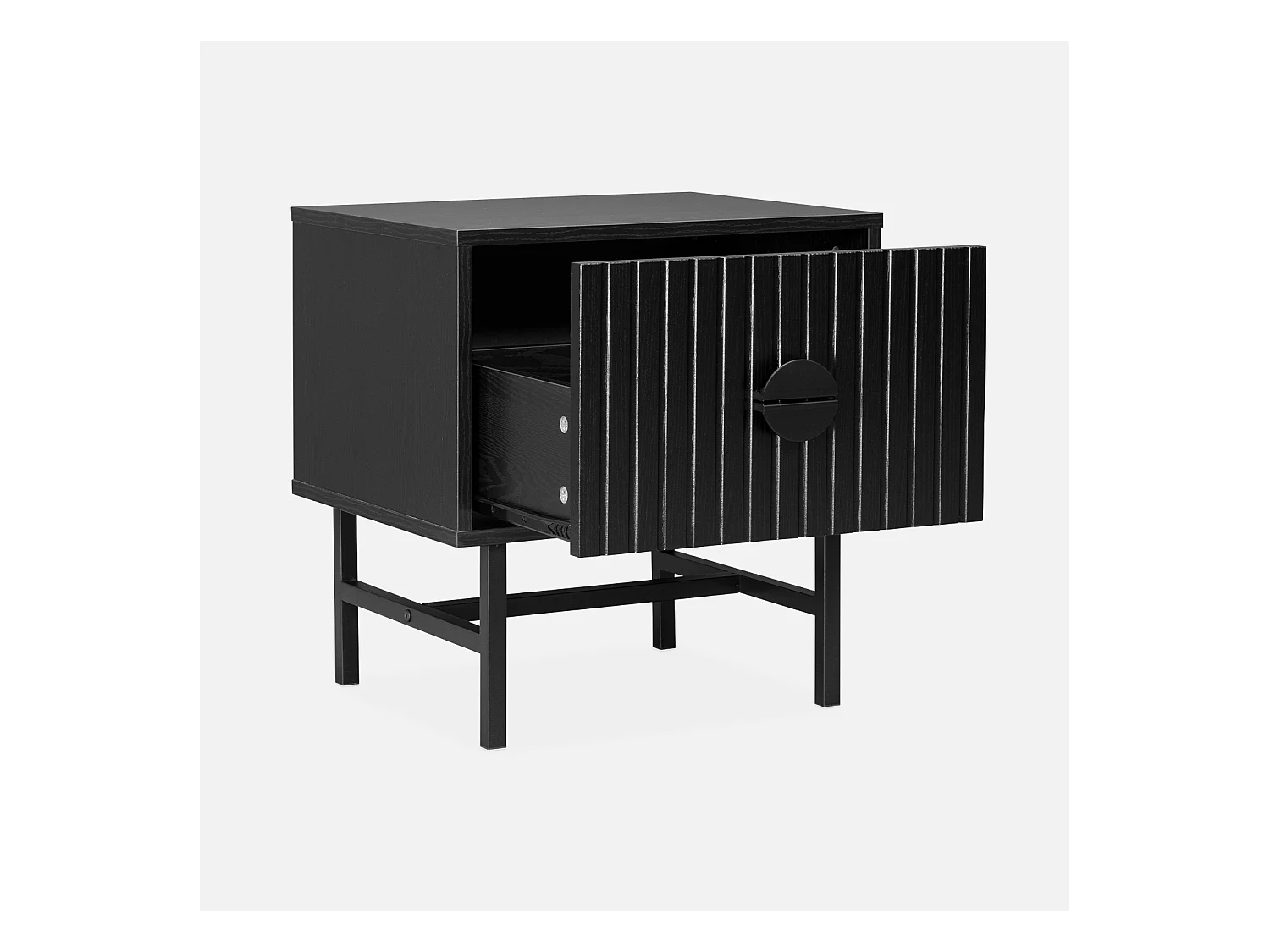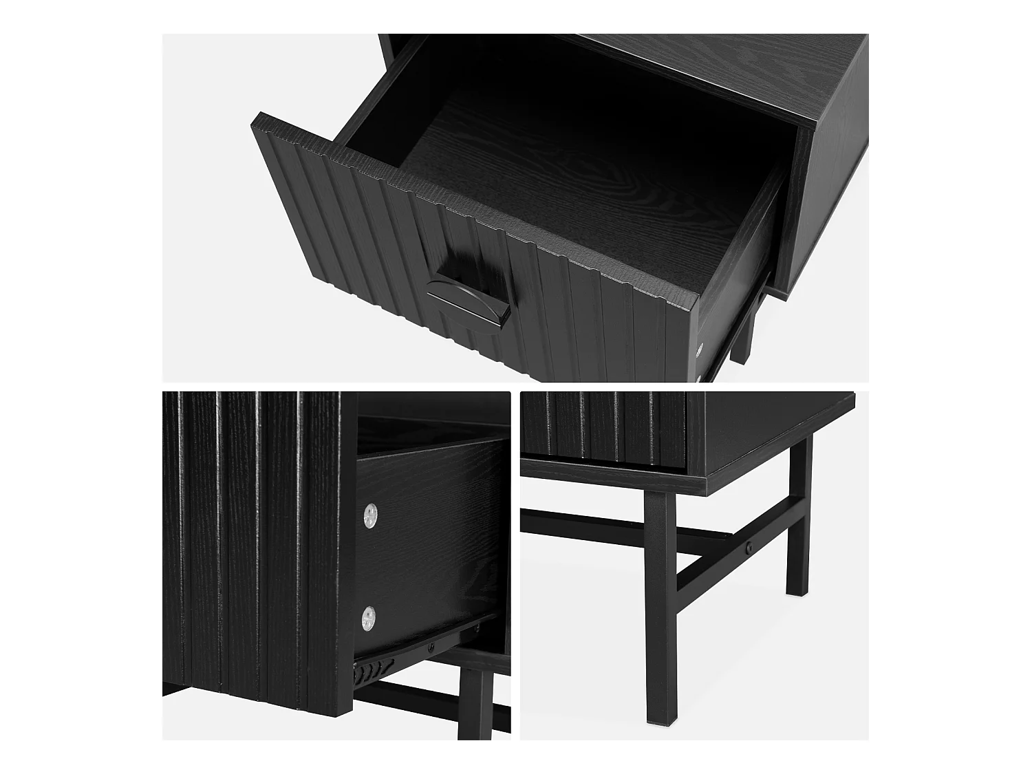 Comodino con effetto legno scanalato, nero