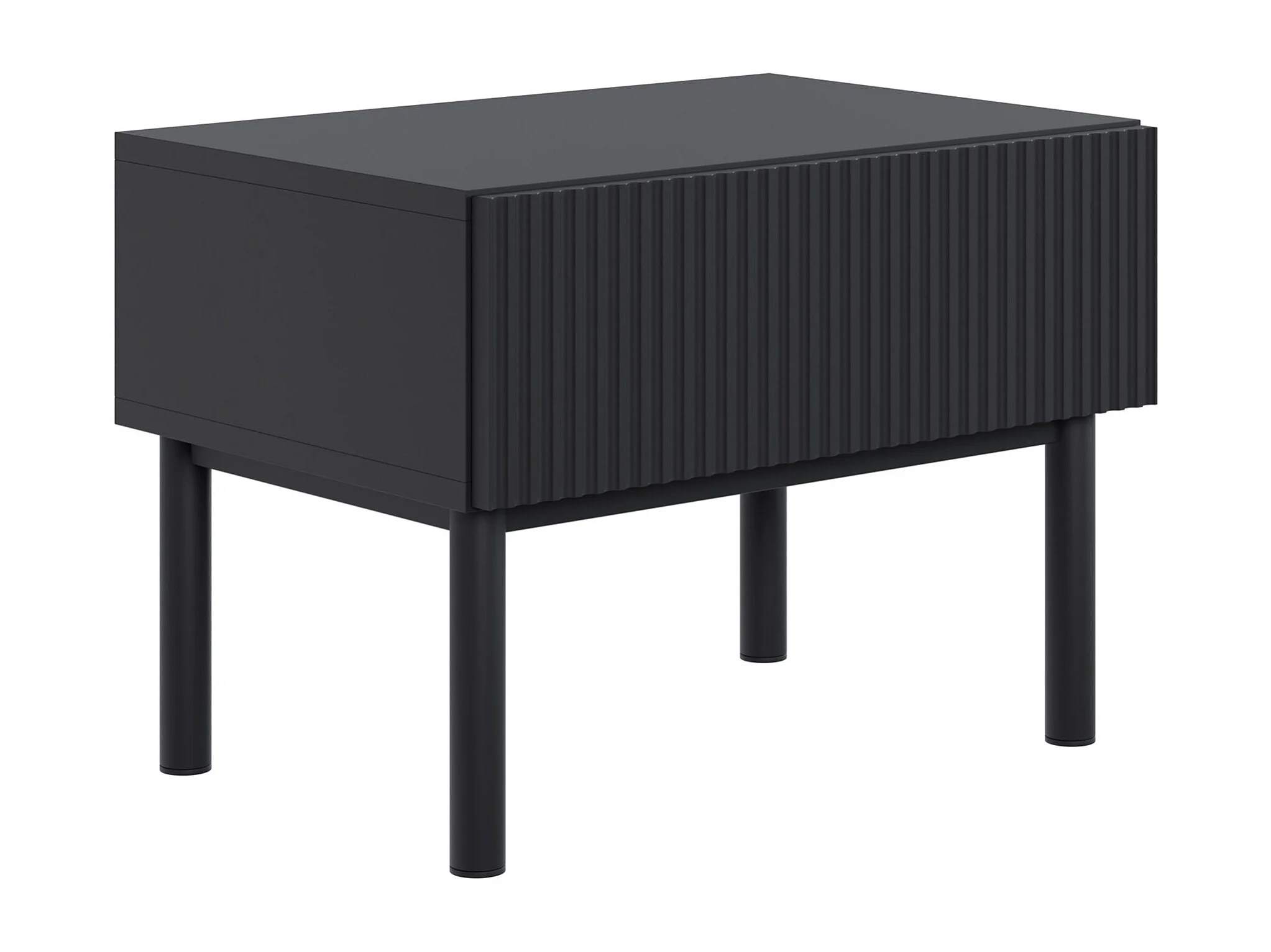 Comodino con frontale a doghe e cassetto – Nero – 50 cm – VELDIO NEW