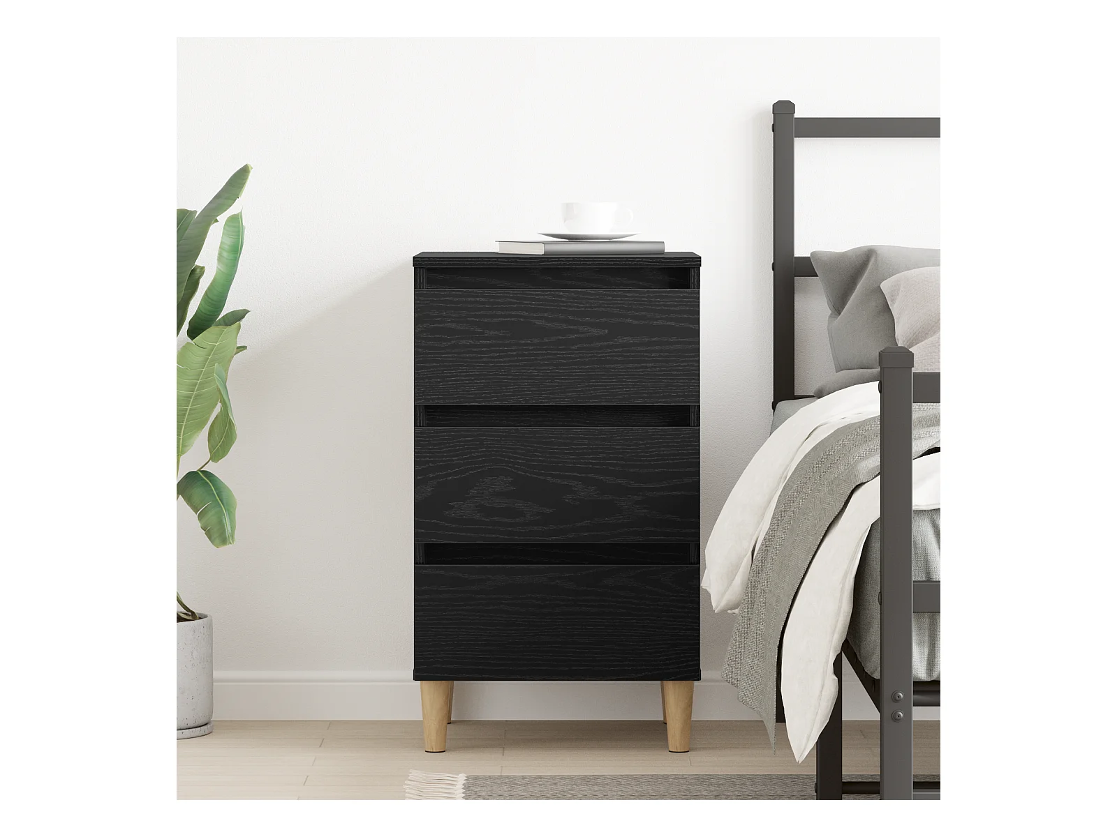 Comodino in rovere nero 40x35x65 cm in legno ingegnerizzato