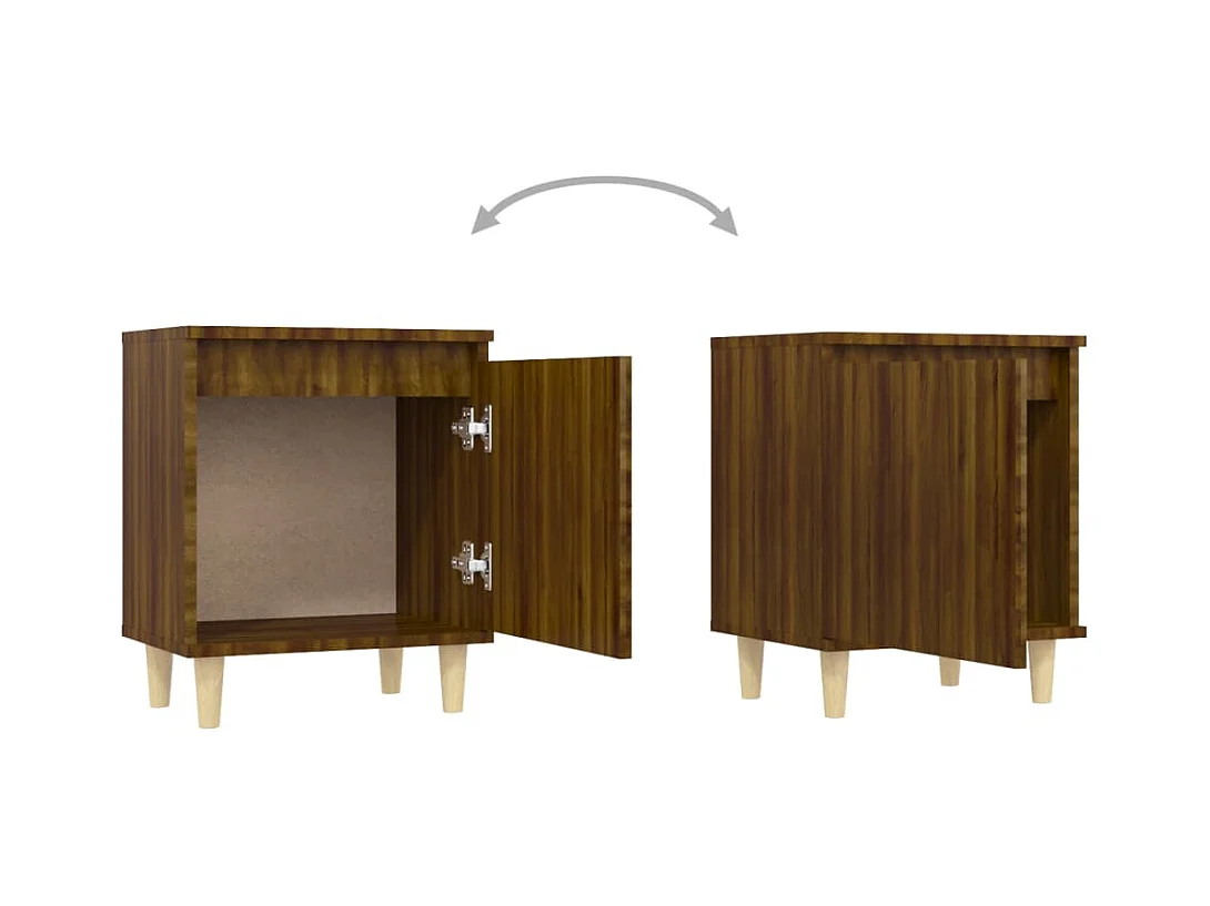 Comodino con Gambe in Legno Massello Rovere Marrone 40x35x50 cm