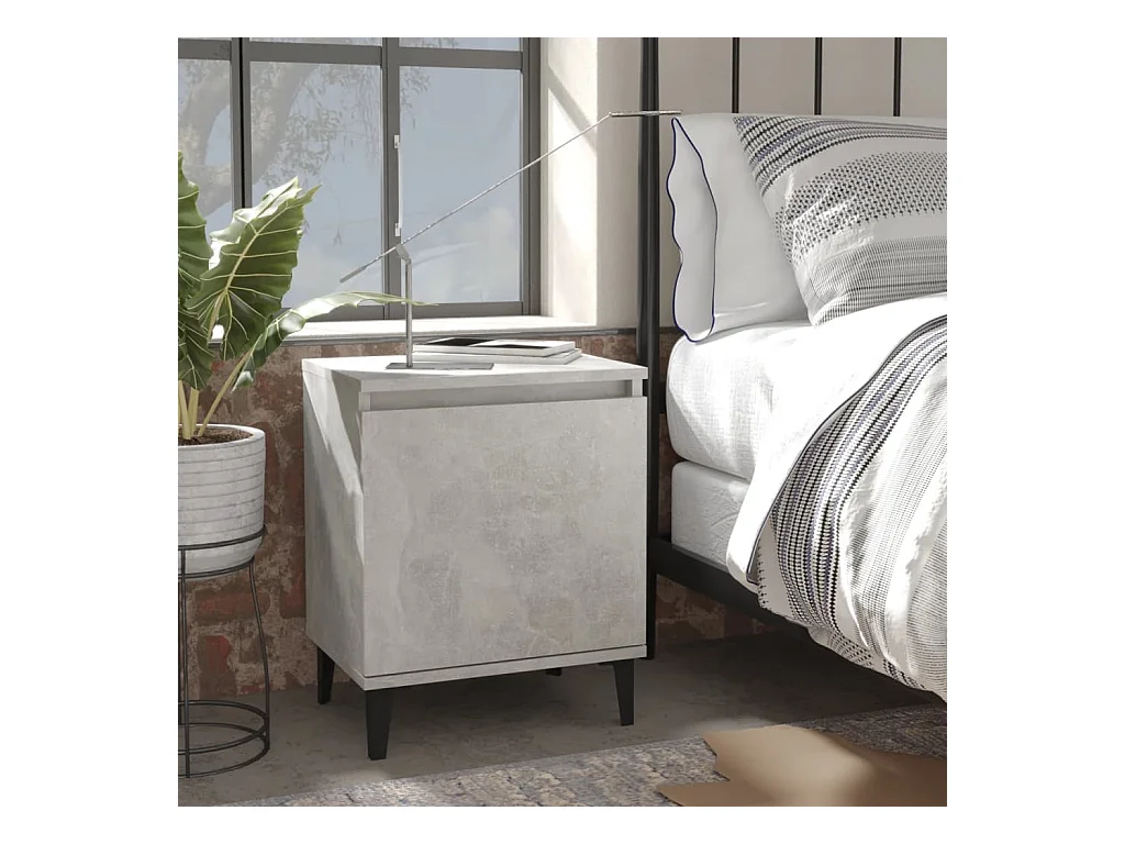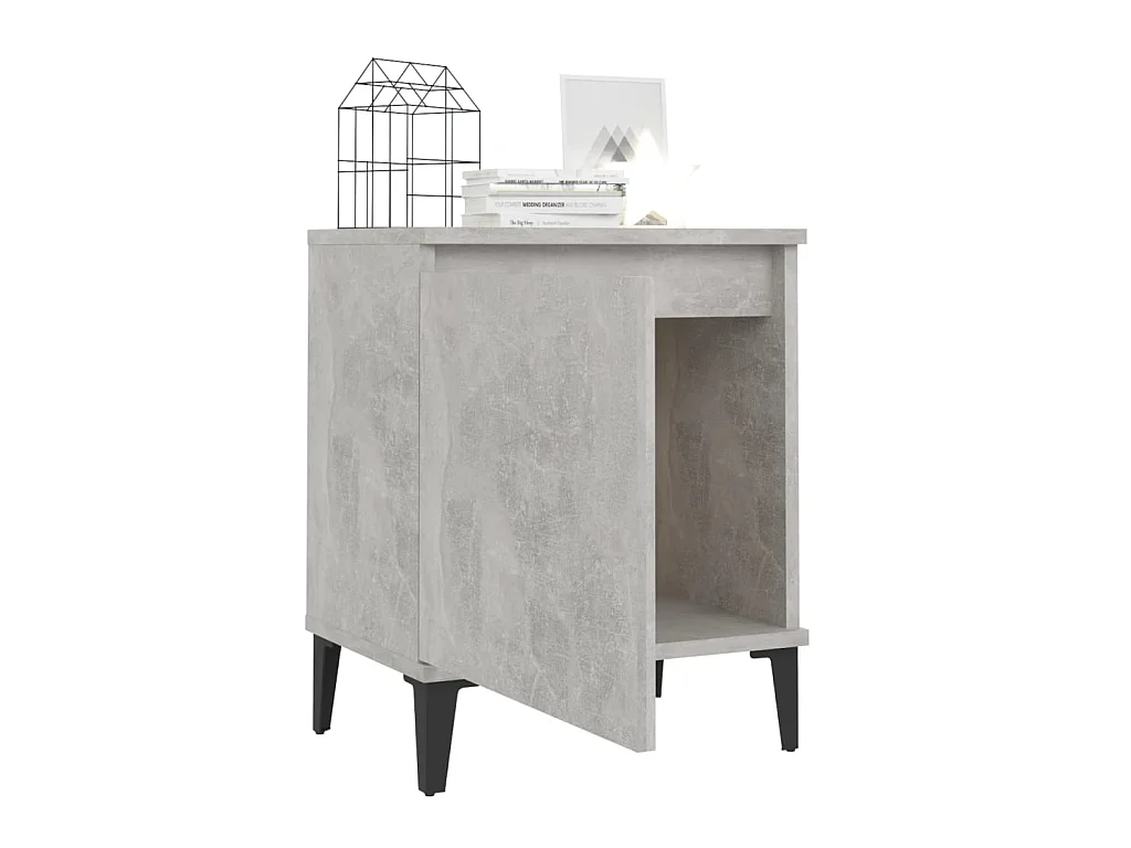 Comodino con gambe in metallo Grigio cemento 40x30x50 cm