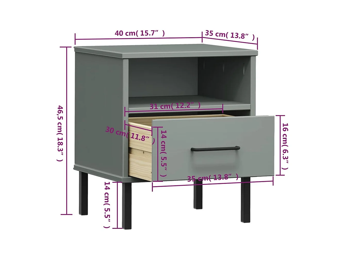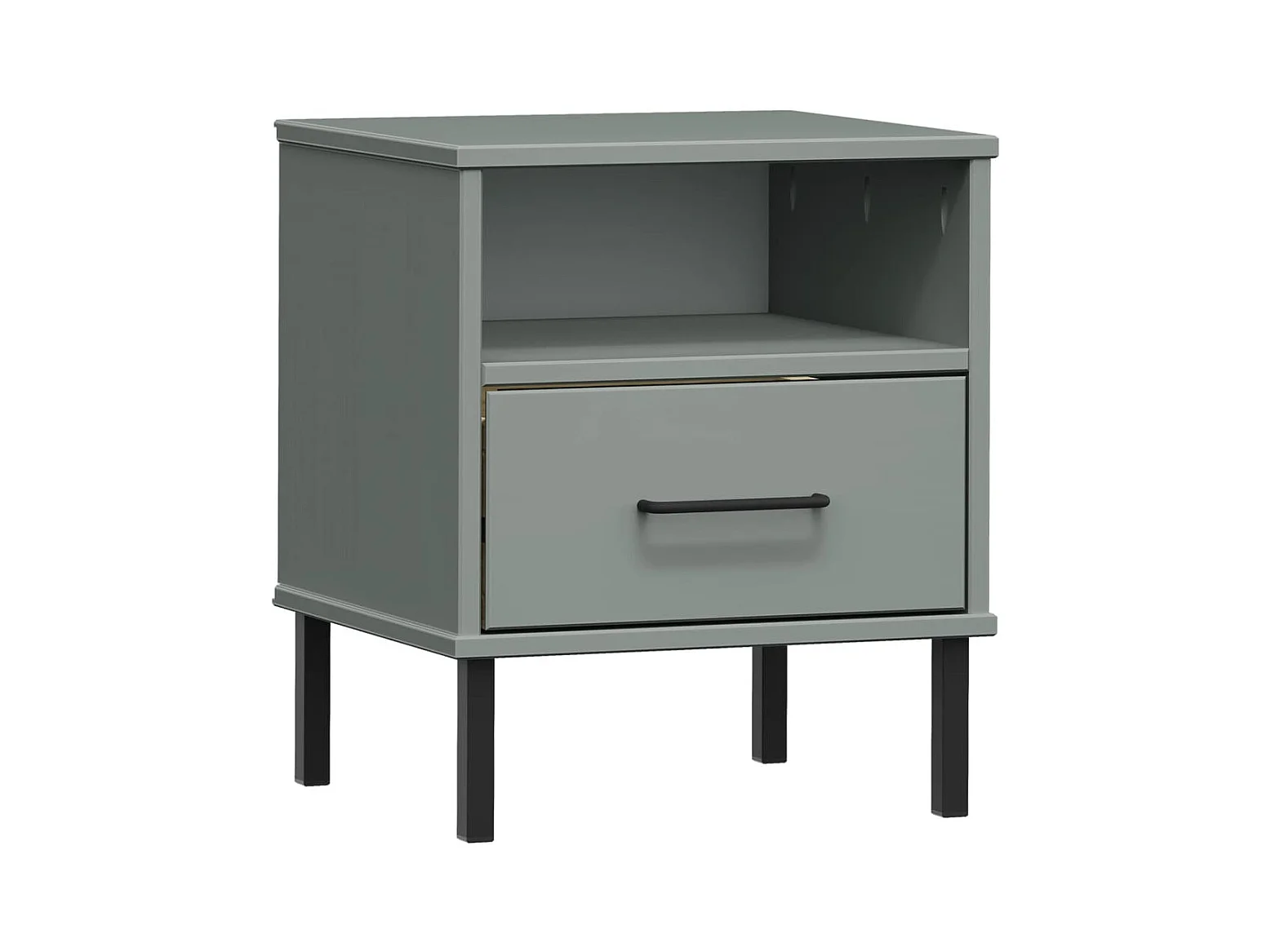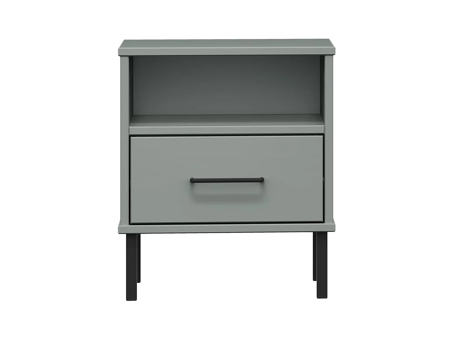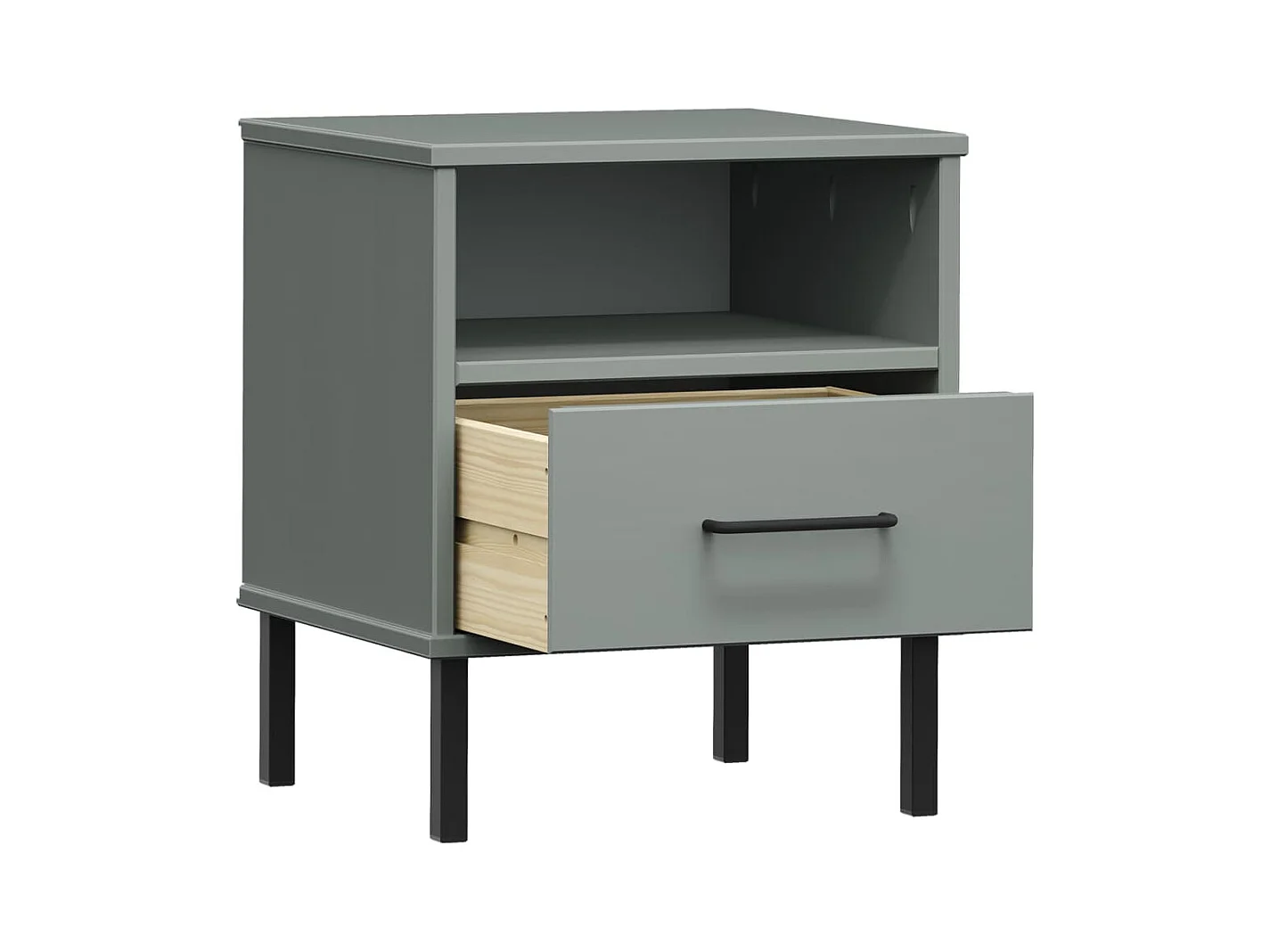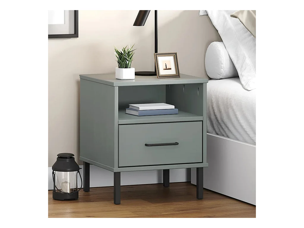 Comodino con gambe in metallo Grigio Legno massello di pino OSLO