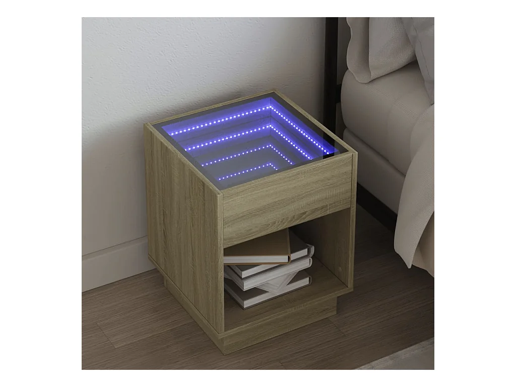 Comodino con LED infinity rovere sonoma 40x40x50 cm