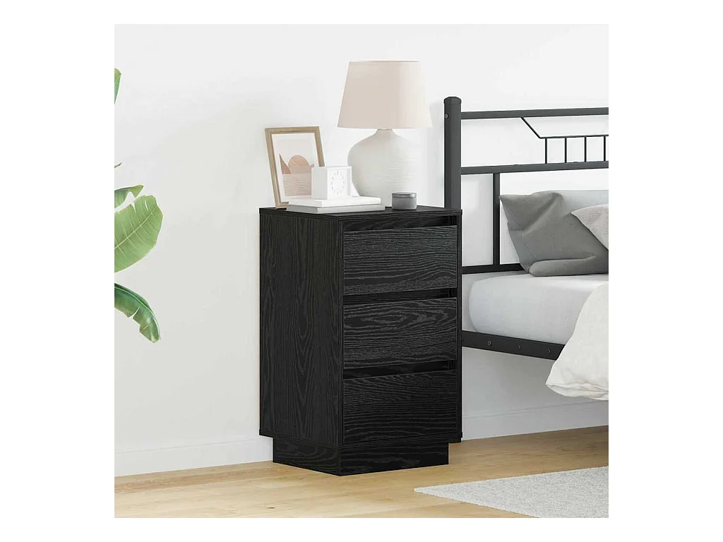 Comodino con LED in rovere nero 50x34,5x50 cm