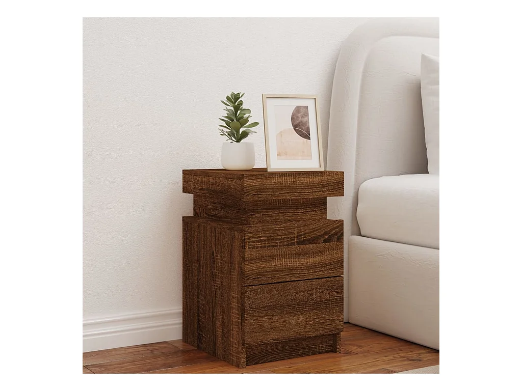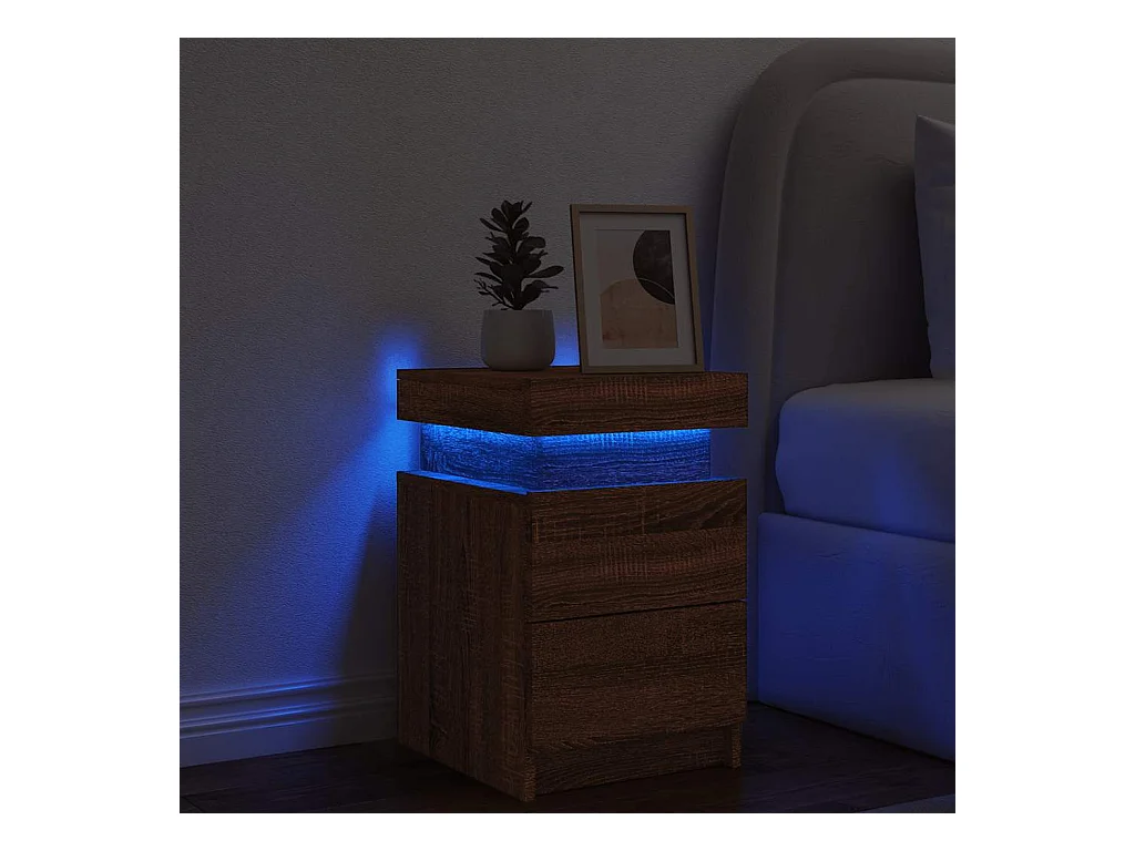 Comodino con luci LED rovere marrone 35x39x55 cm