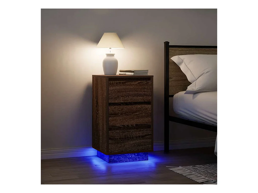 Comodino con Luci LED Rovere Marrone 38x34x50 cm