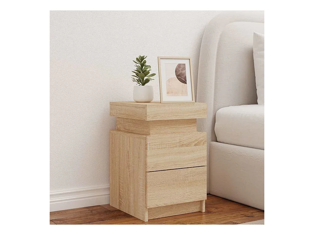 Comodini con LED 2 pezzi in rovere realizzati a mano in legno ingegnerizzato