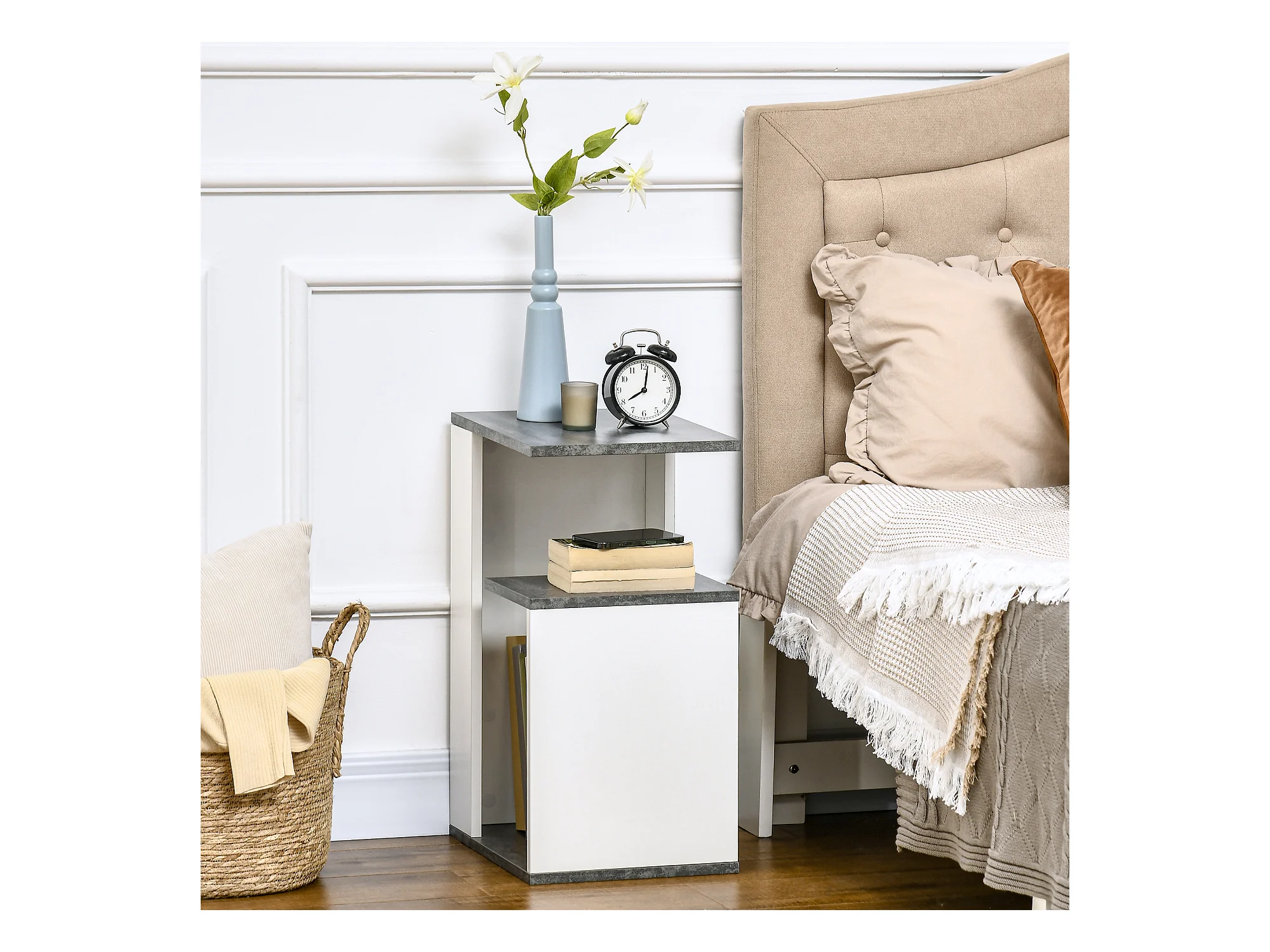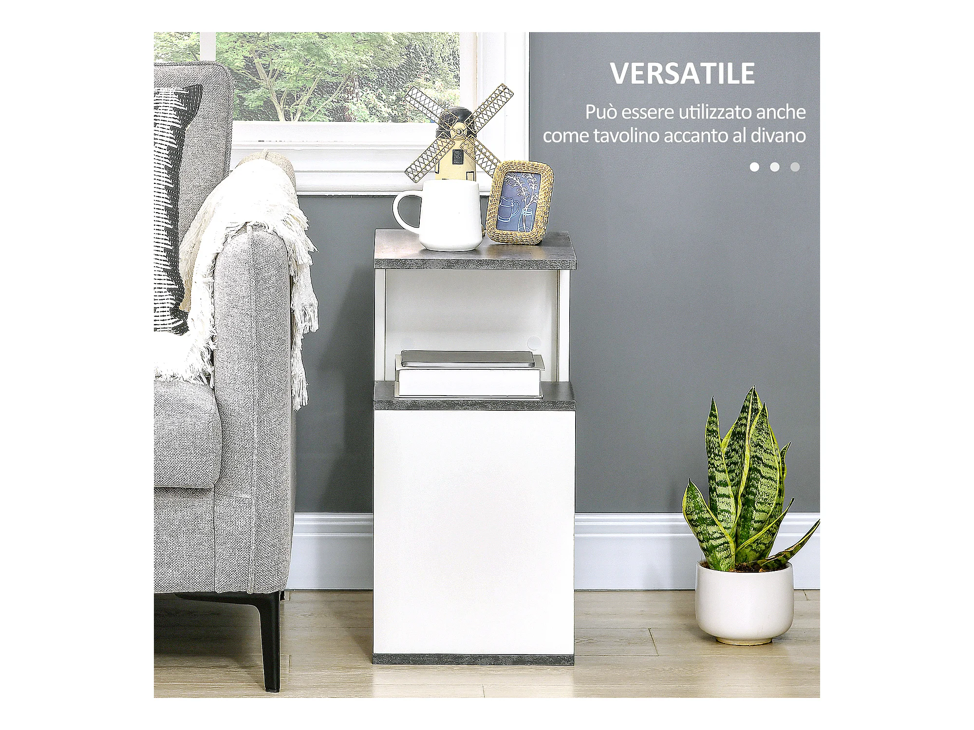 Comodino con ripiano aperto in truciolato grigio e bianco