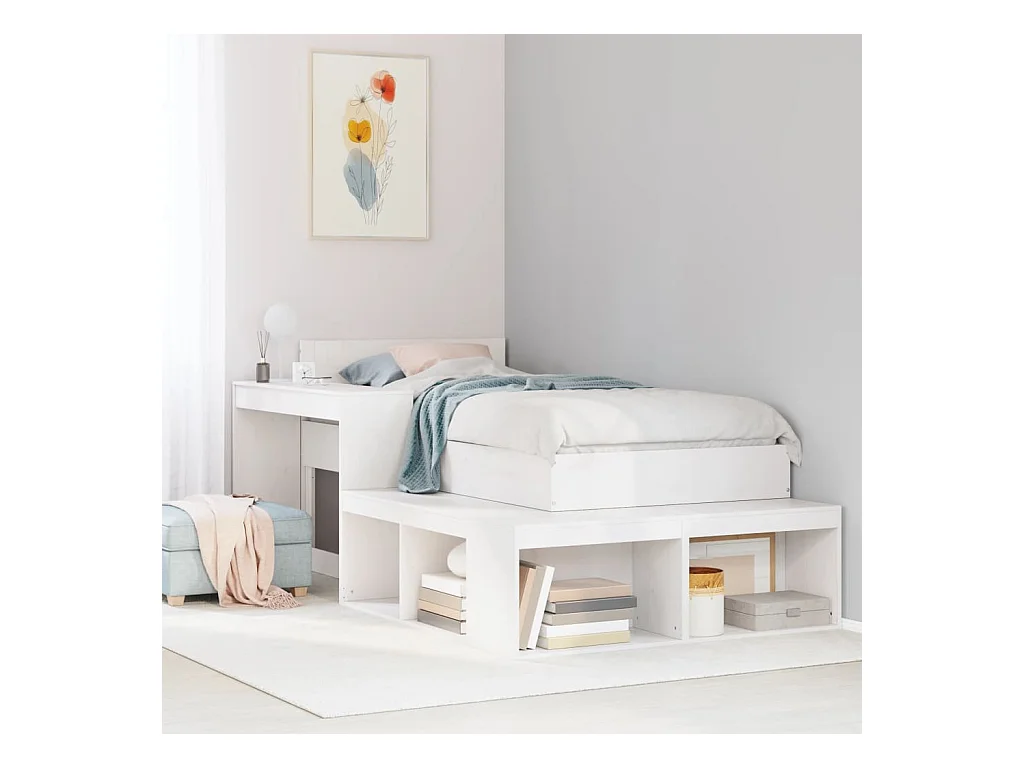 Comodino con Scrivania Bianco 222x107x75 cm in Legno di Pino