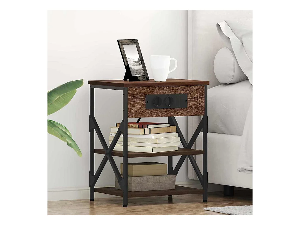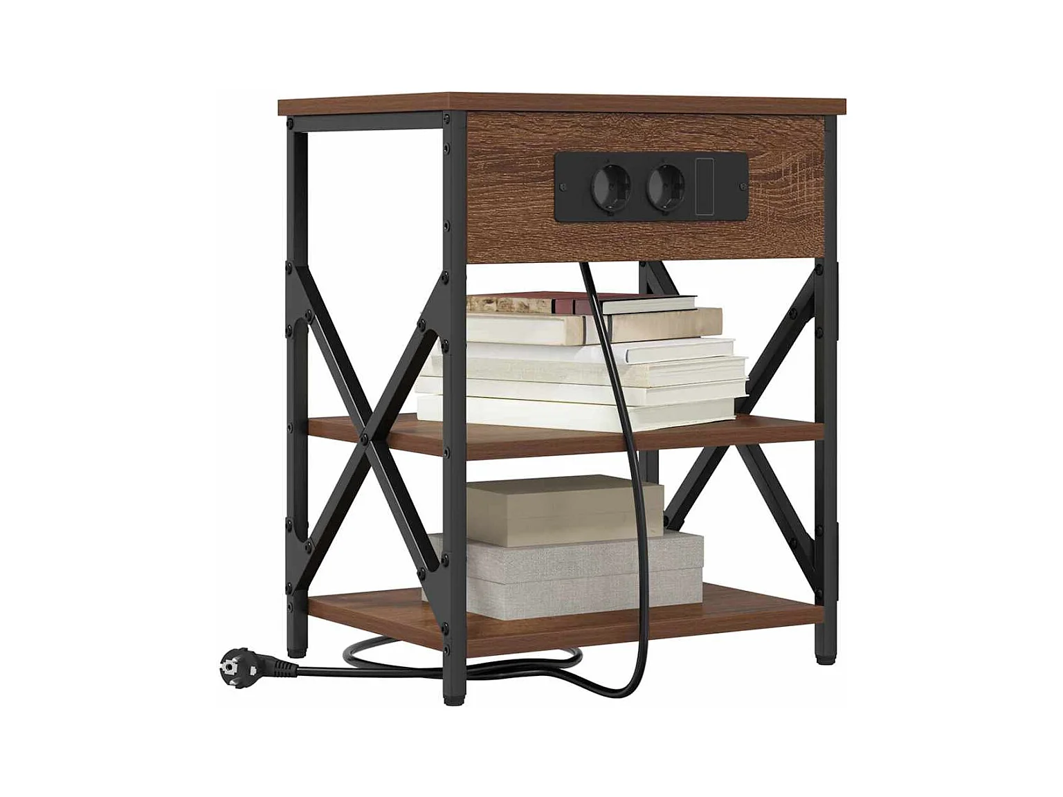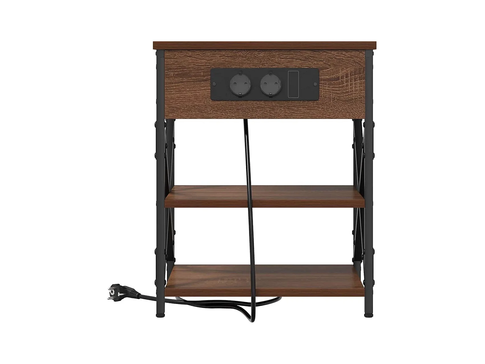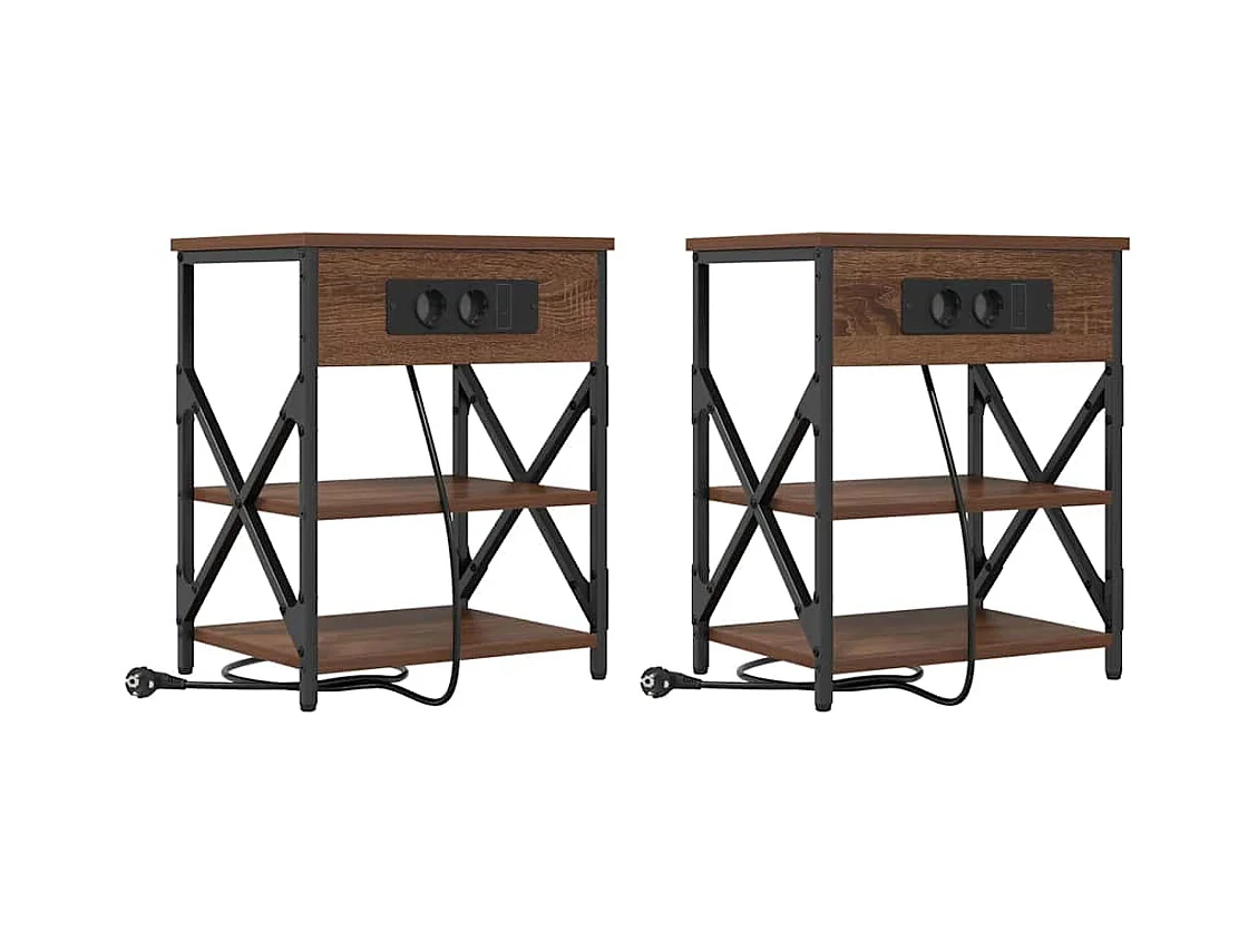 Comodino con stazione di ricarica 2 pezzi Rovere marrone