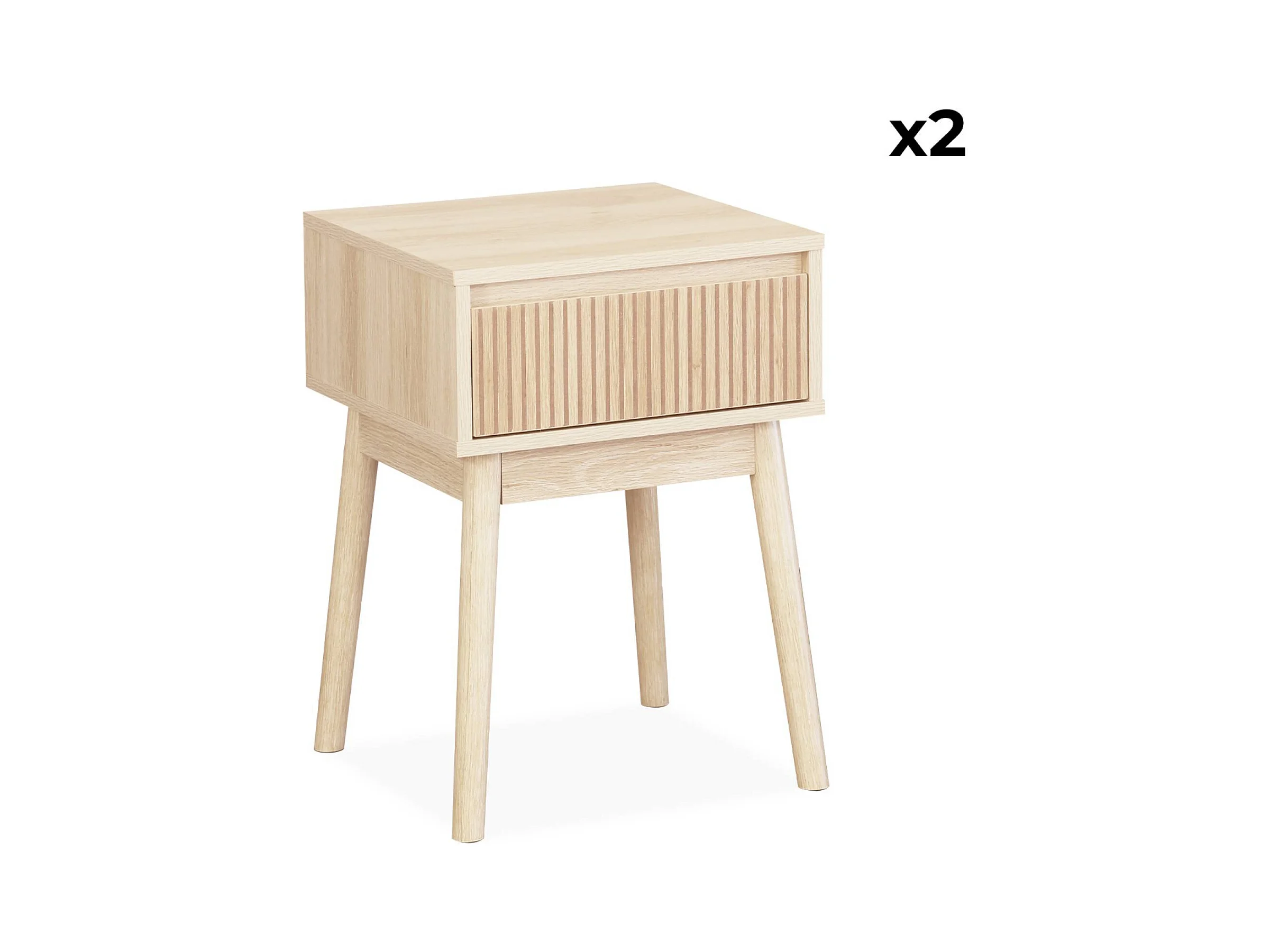 Comodino MCW-O39, tavolino d'appoggio comodino armadietto, cassetto melamina MDF metallo 50x48x39cm ~ naturale