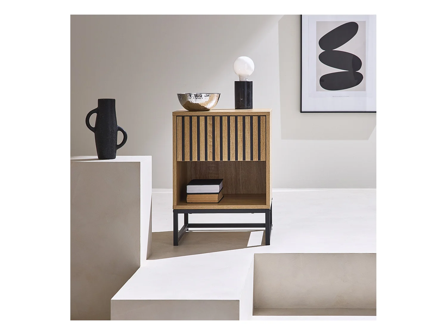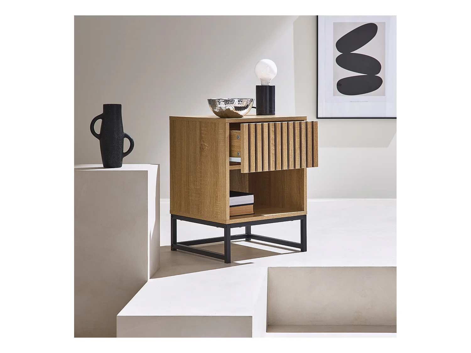 Comodino contemporaneo effetto legno scanalato con 1 cassetto, marrone
