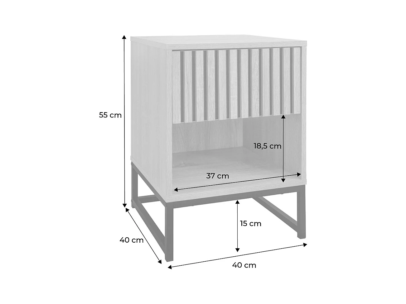 Set 2 comodini contemporanei, decoro in legno scanalato, 1 cassetto,