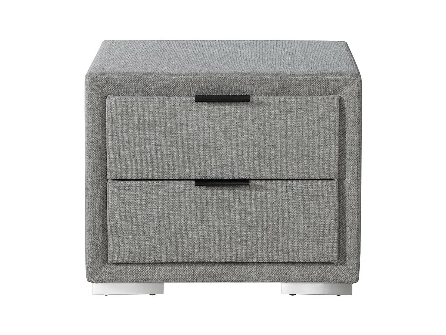 Comodino contemporaneo VIORNE in tessuto grigio con due cassetti