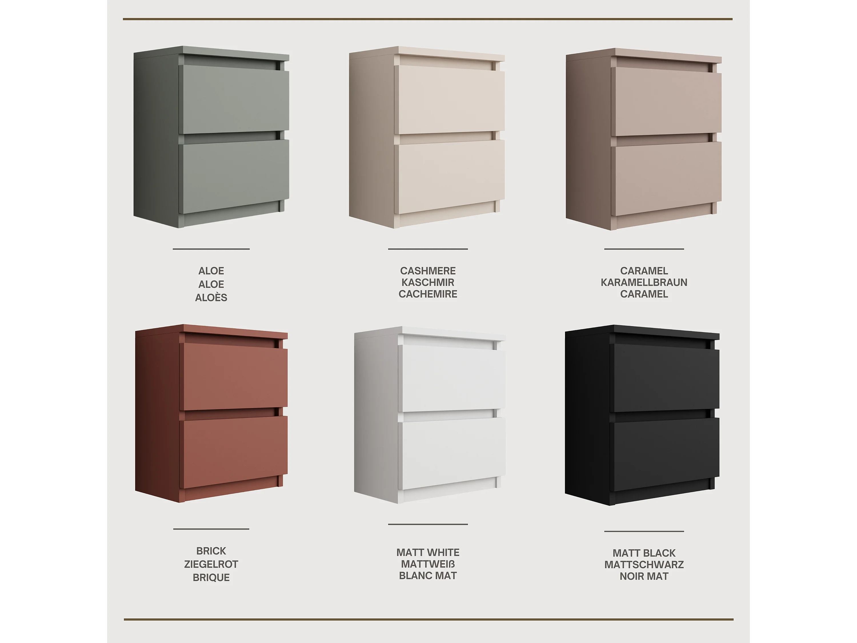 Comodino da appoggio con due cassetti – 45 × 36 × 36 cm – colore: Nero