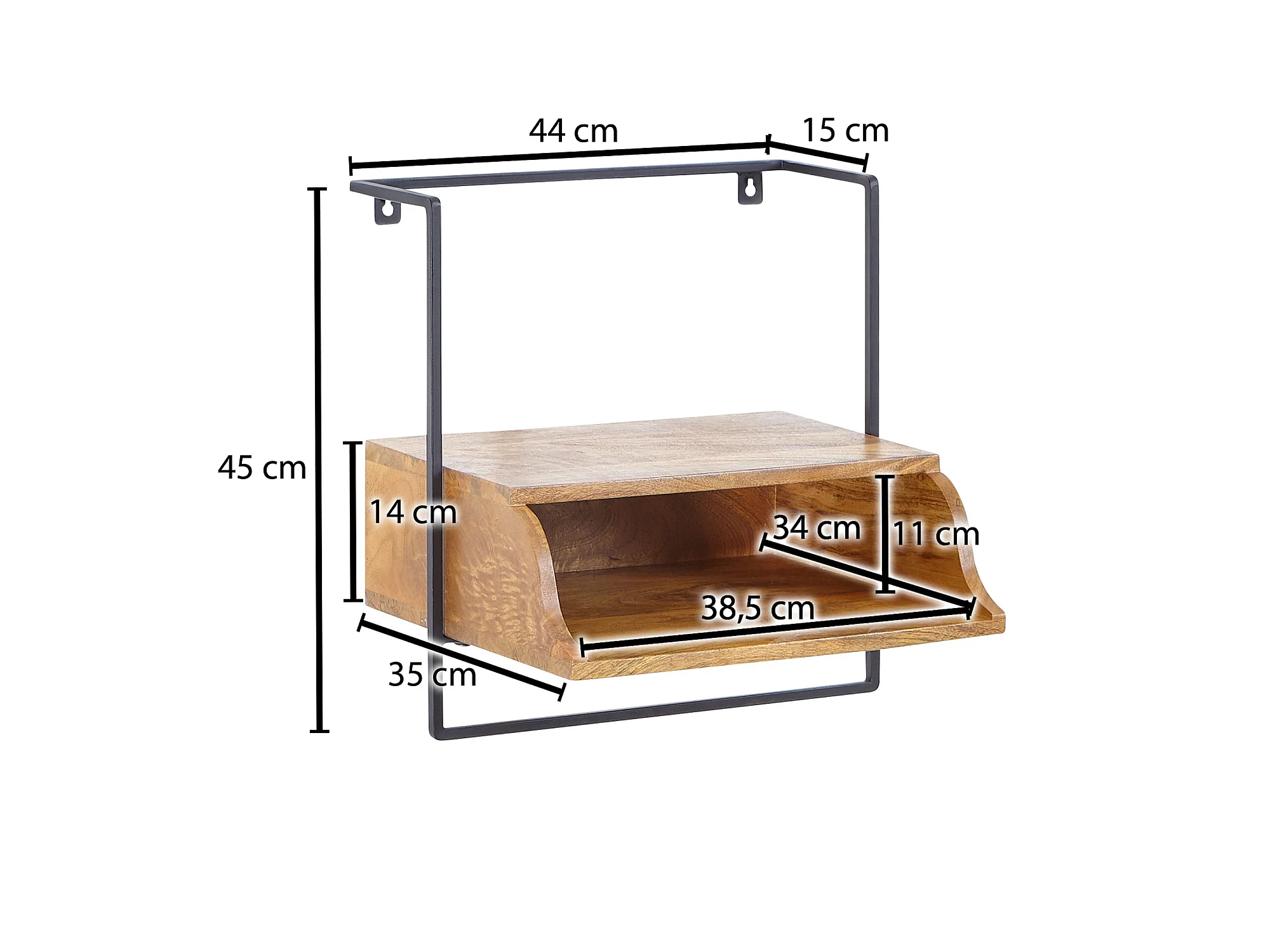 Comodino da Letto da Muro Legno Massello 44x45x35 cm Tavolino da Notte