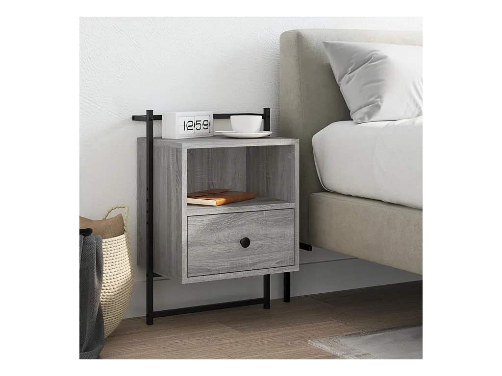 Comodino Sonoma Grey 40x30x40 cm in legno ingegnerizzato