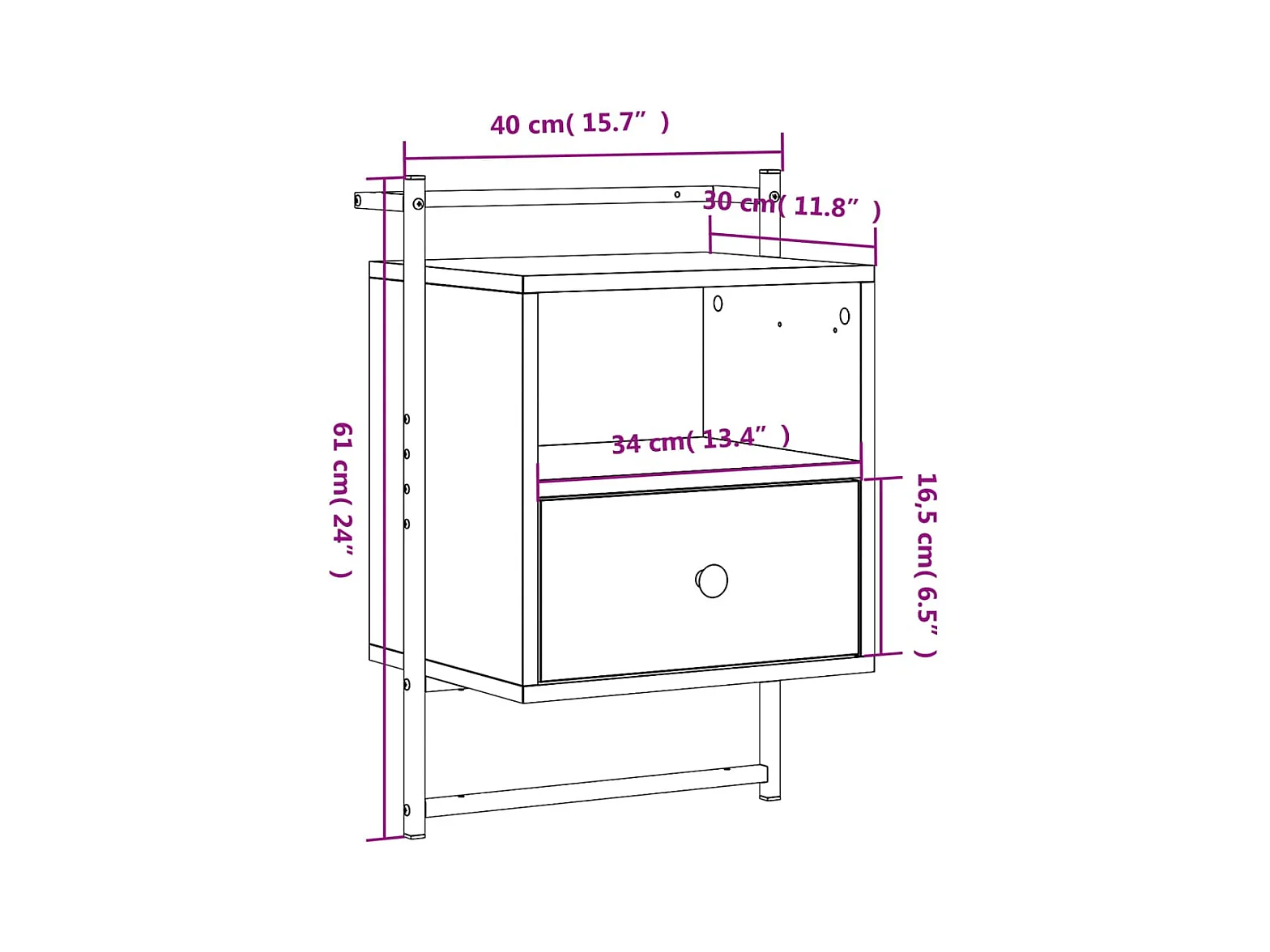 Comodino da parete grigio Sonoma 40x30x61cm in legno ingegnerizzato