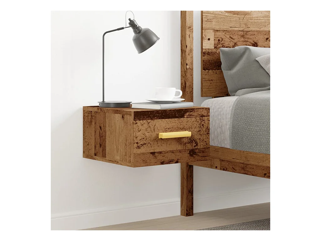 Comodino da parete in rovere lavorato a mano 35x35x20 cm