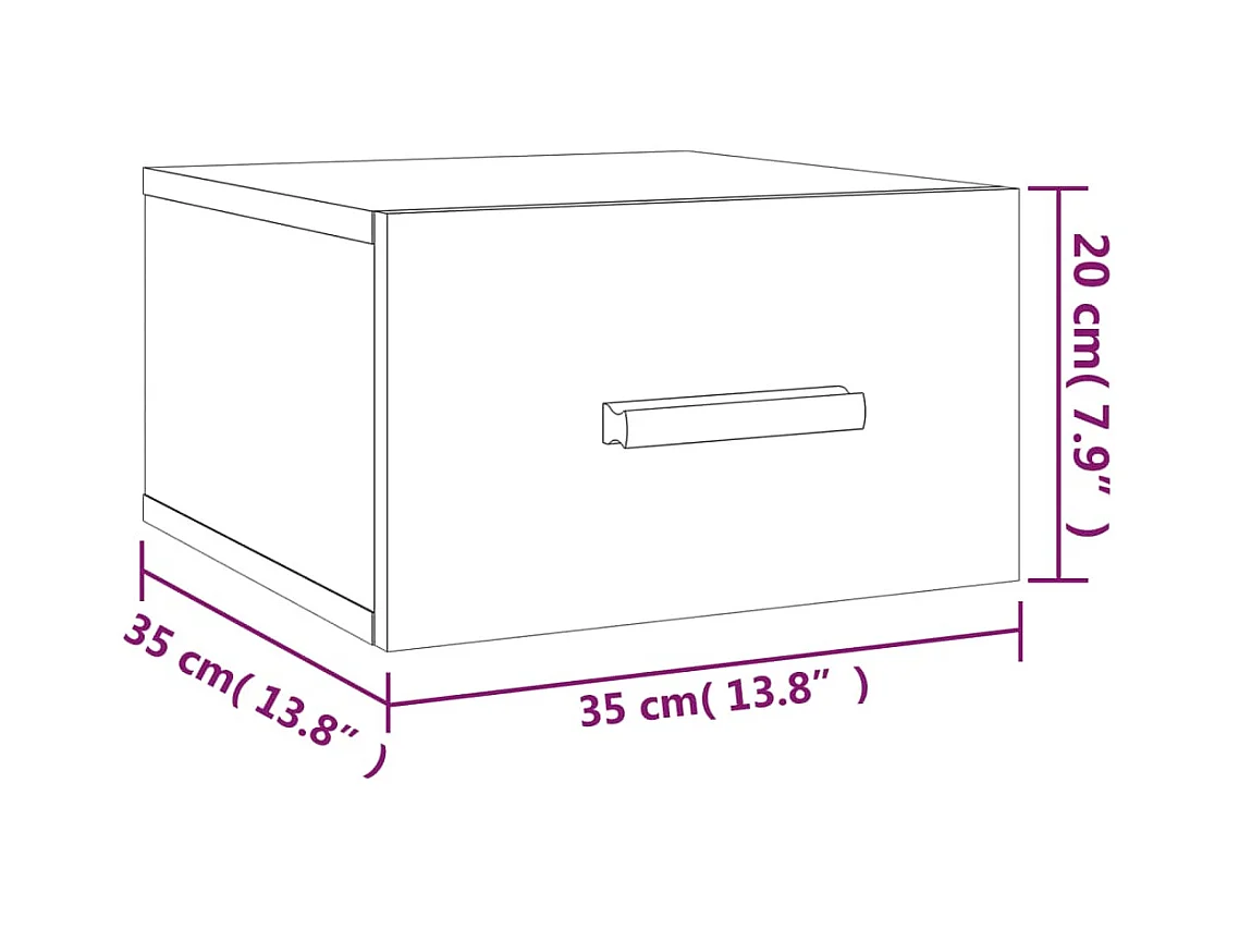 Comodino da parete in rovere affumicato 35x35x20 cm