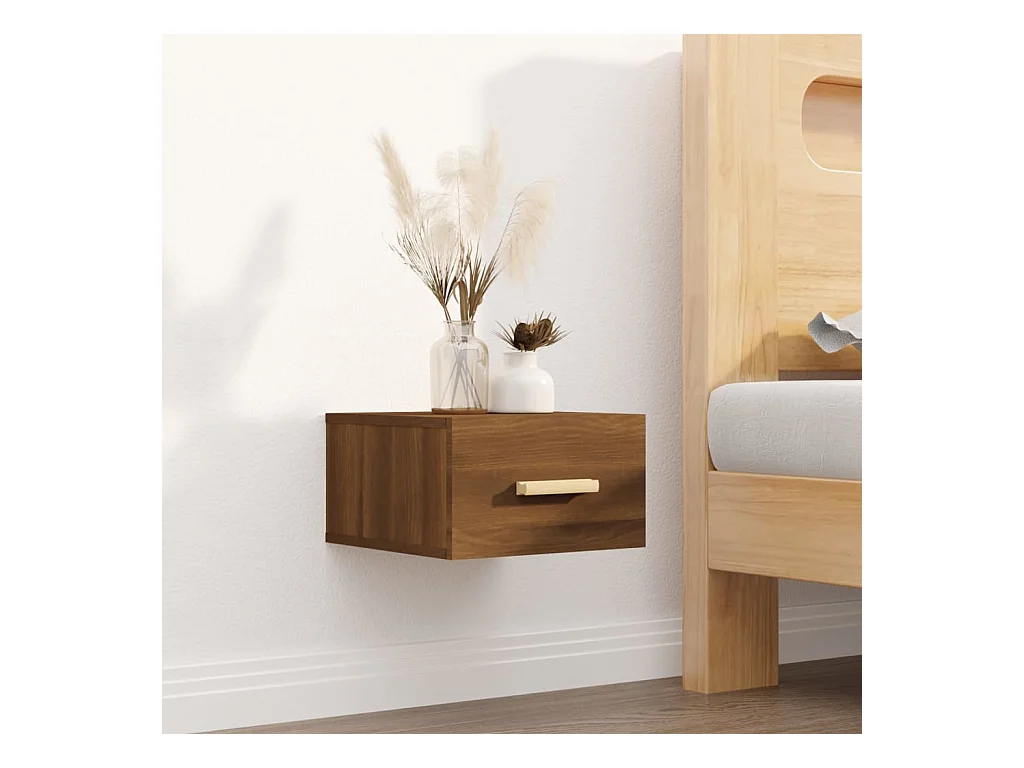 Comodino da parete in rovere marrone 35x35x20 cm