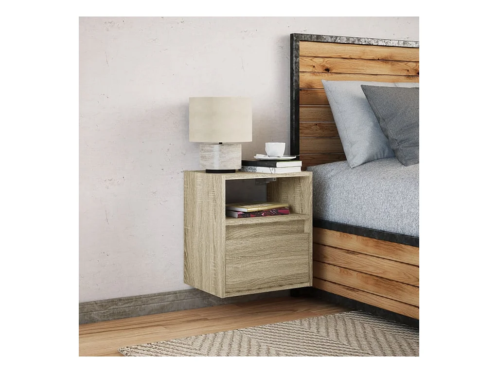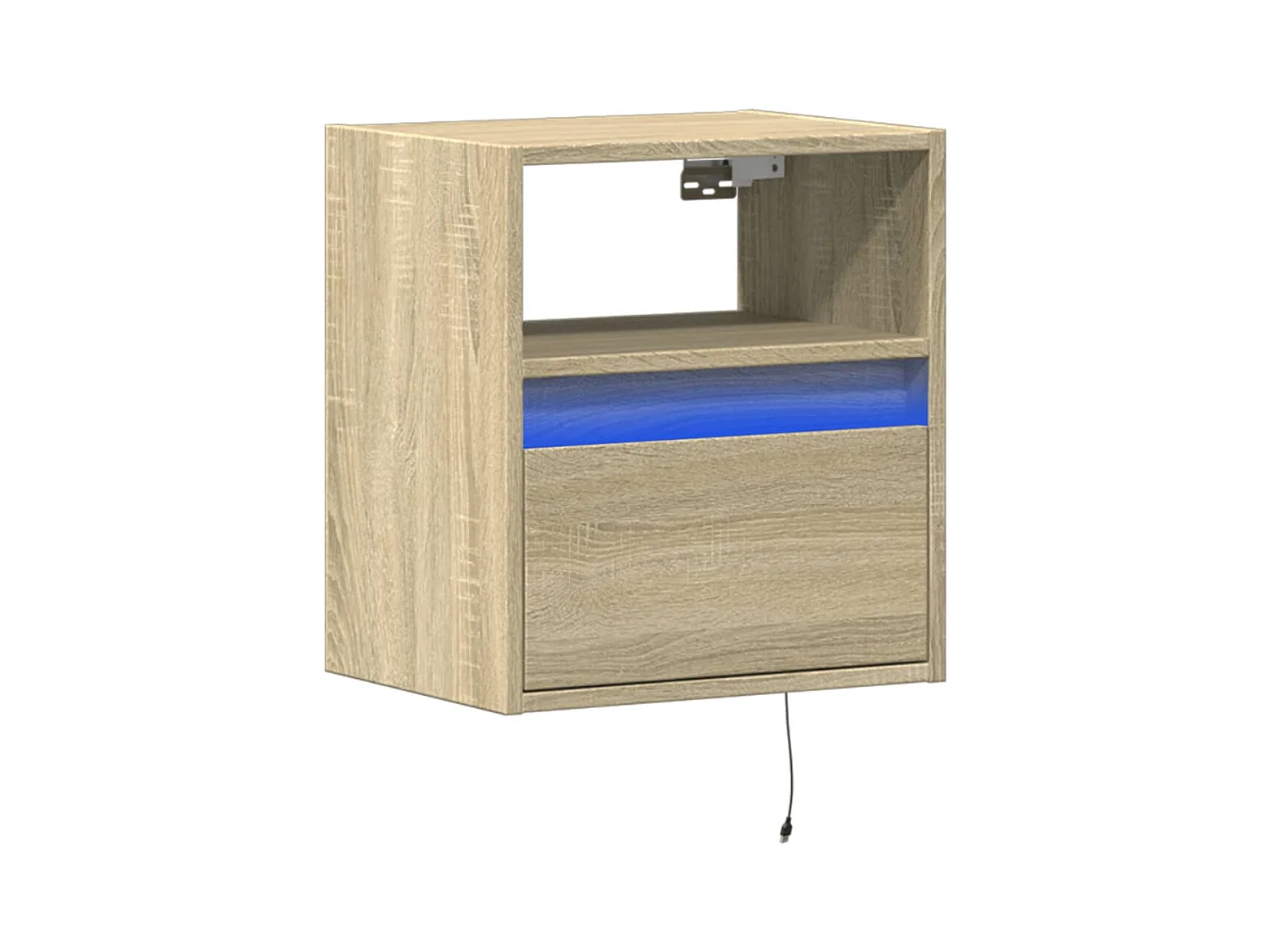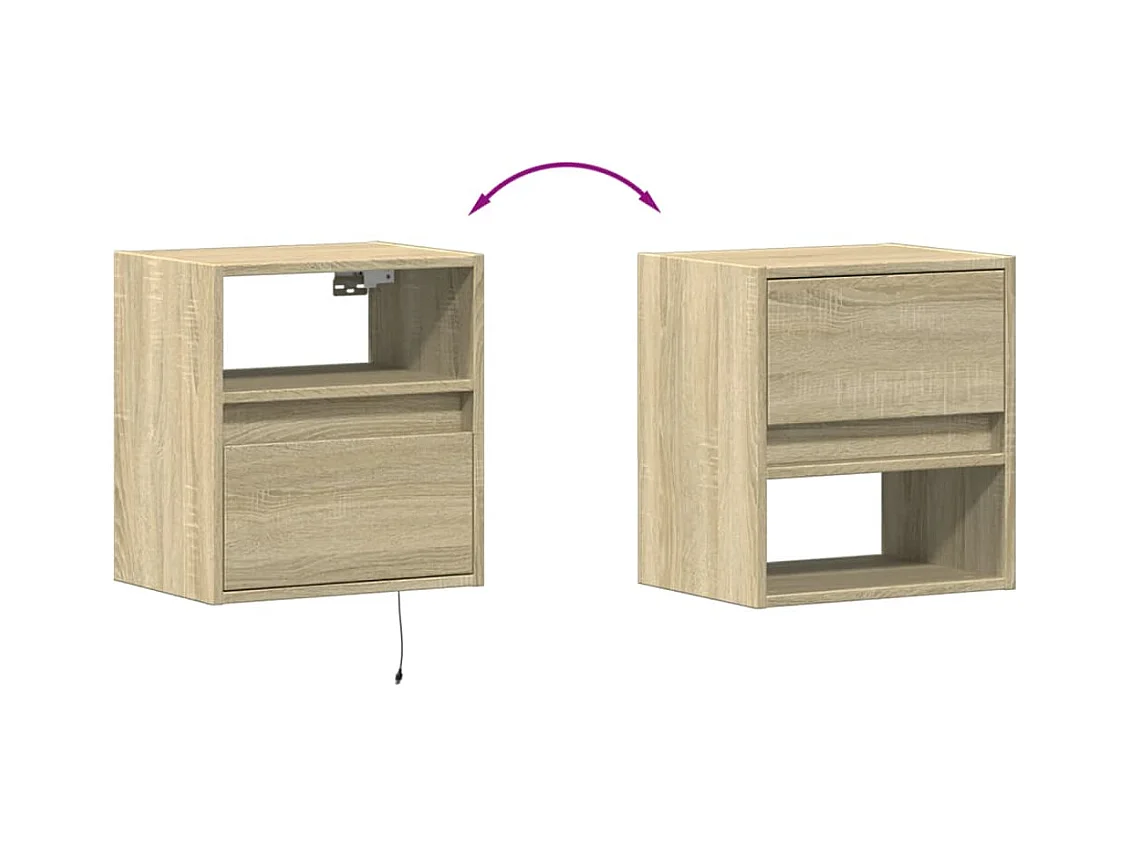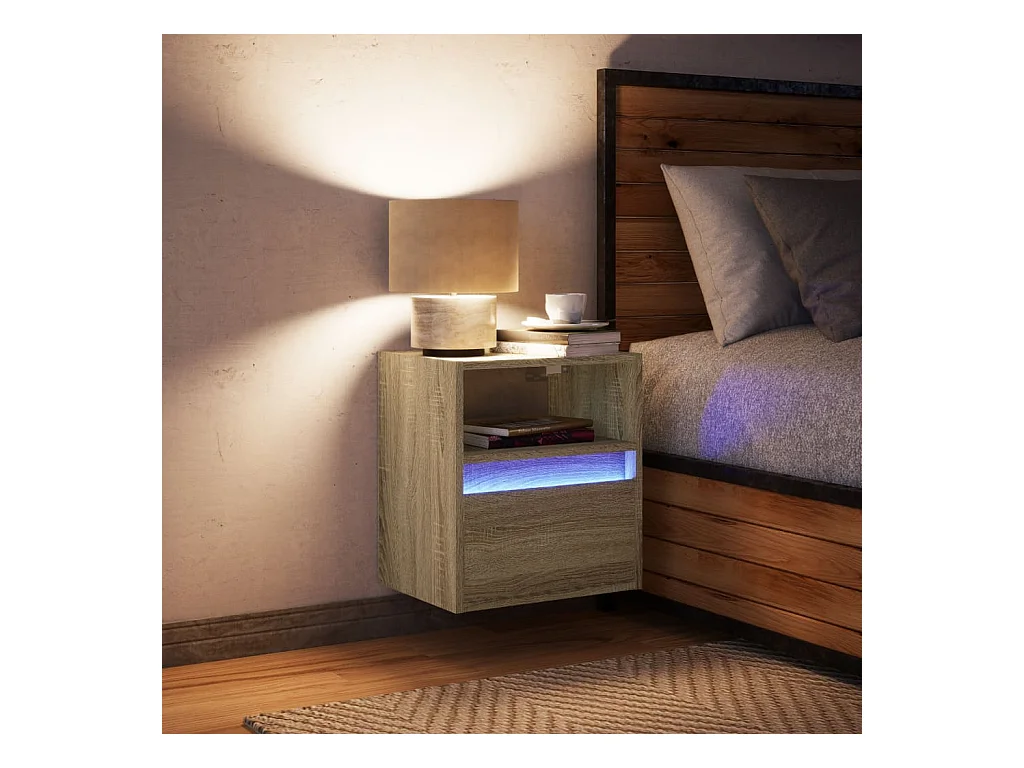 Comodini da parete con luci LED 2 pezzi rovere affumicato