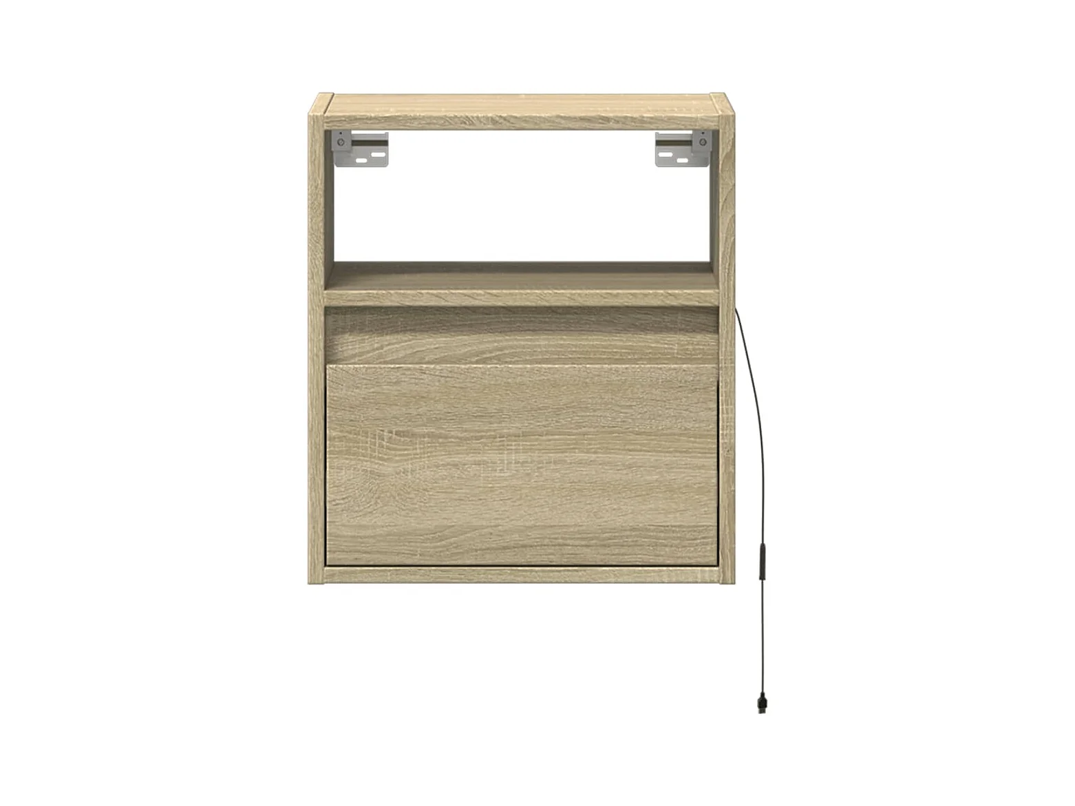Comodini da parete con luci LED 2 pezzi rovere marrone