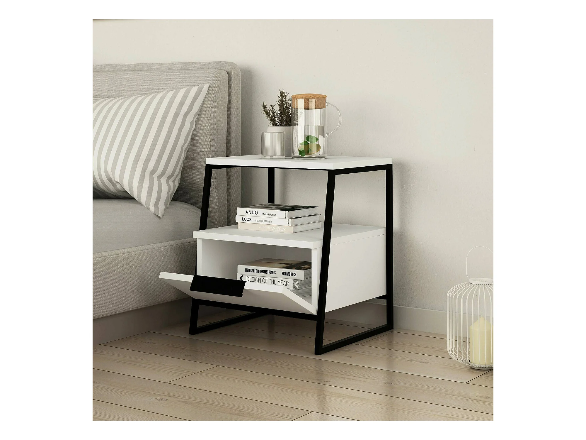 Tavolino comodino con cassetti e vano in legno bianco 19_0000457