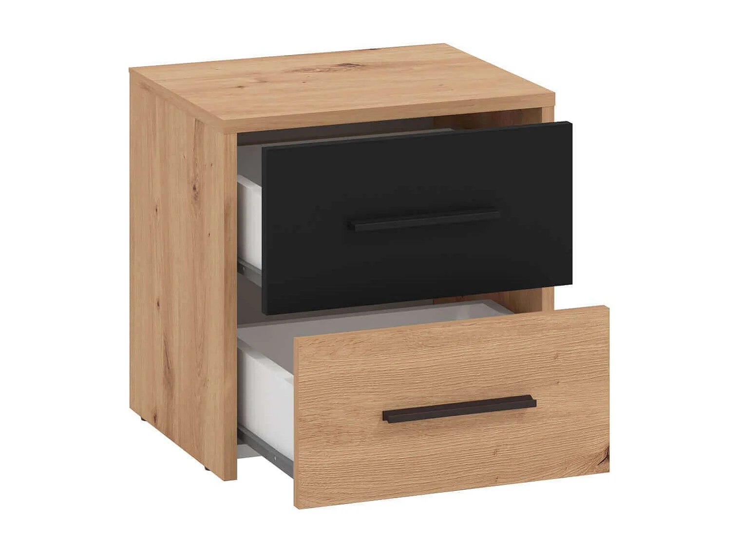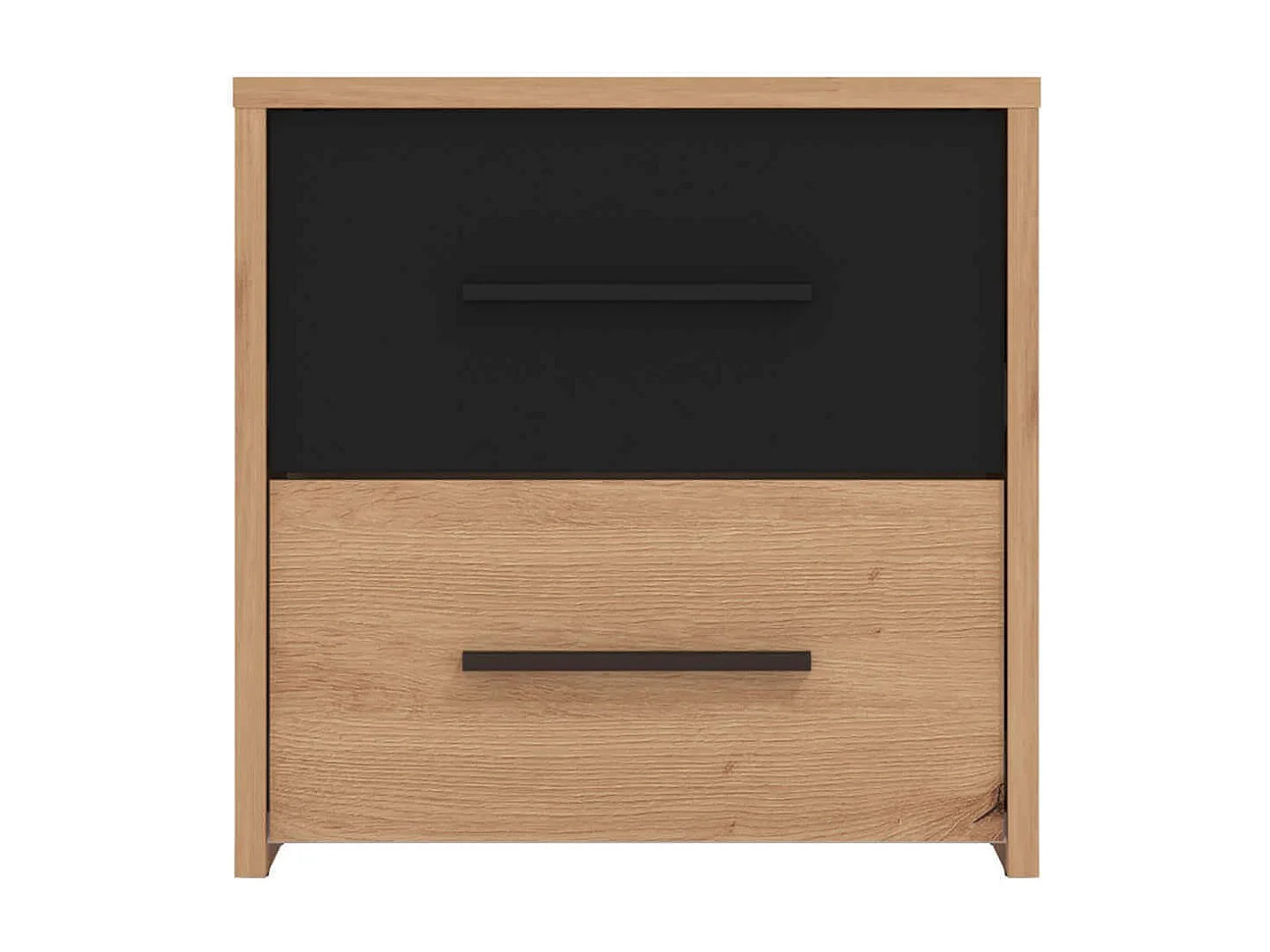 comodino moderno 2 cassetti colore rovere di design moderno industrial cm 44,5 x 33,5 x 43 h