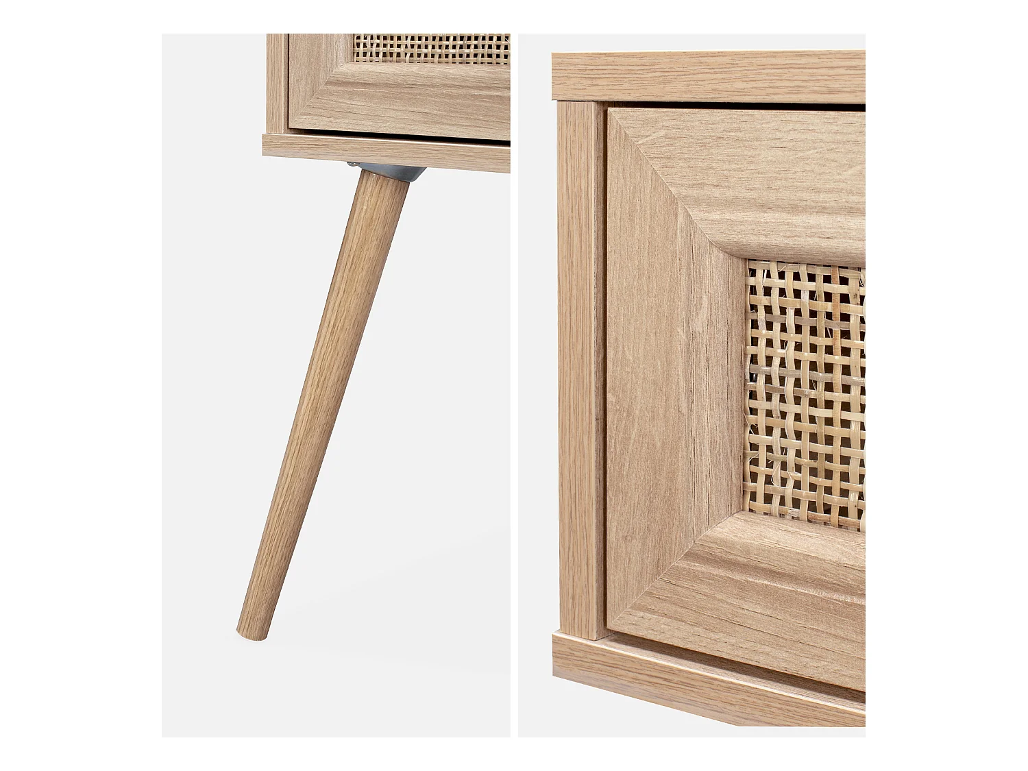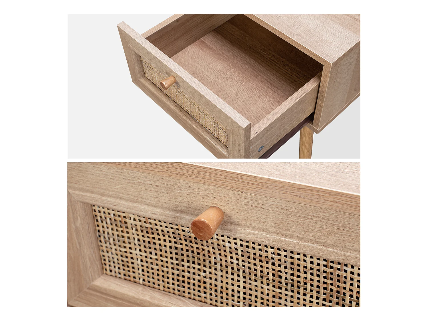 Comodino effetto legno e intrecciatura cannage, 1 cassetto, marrone