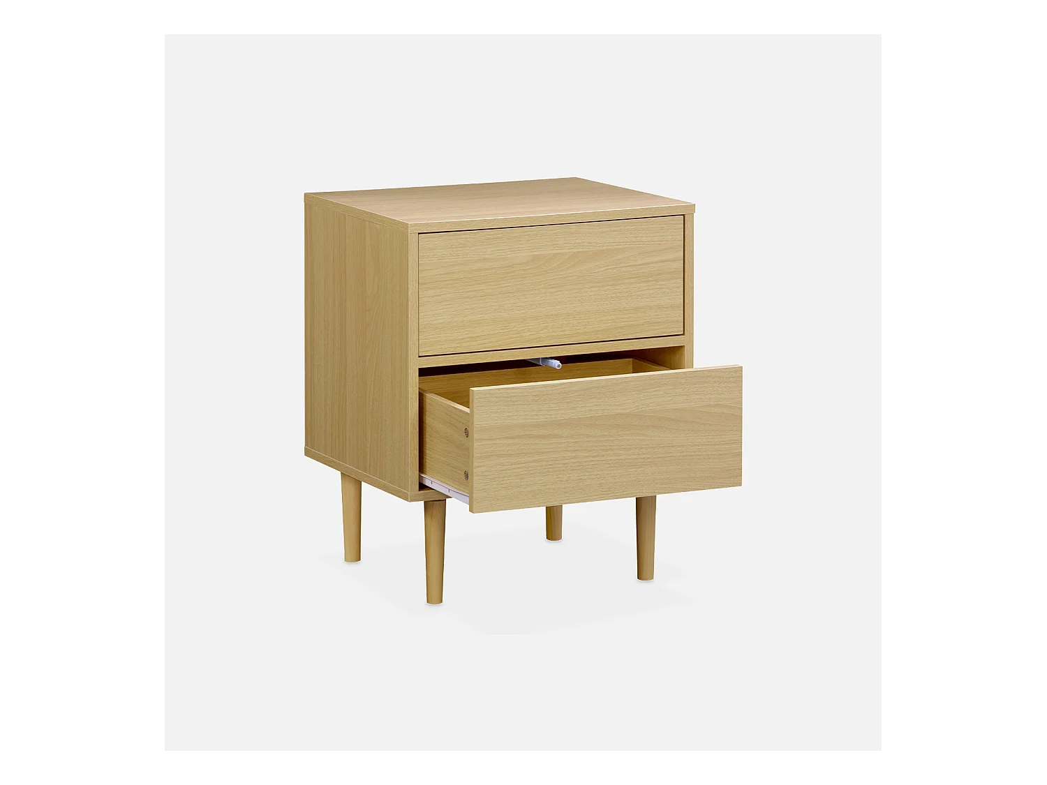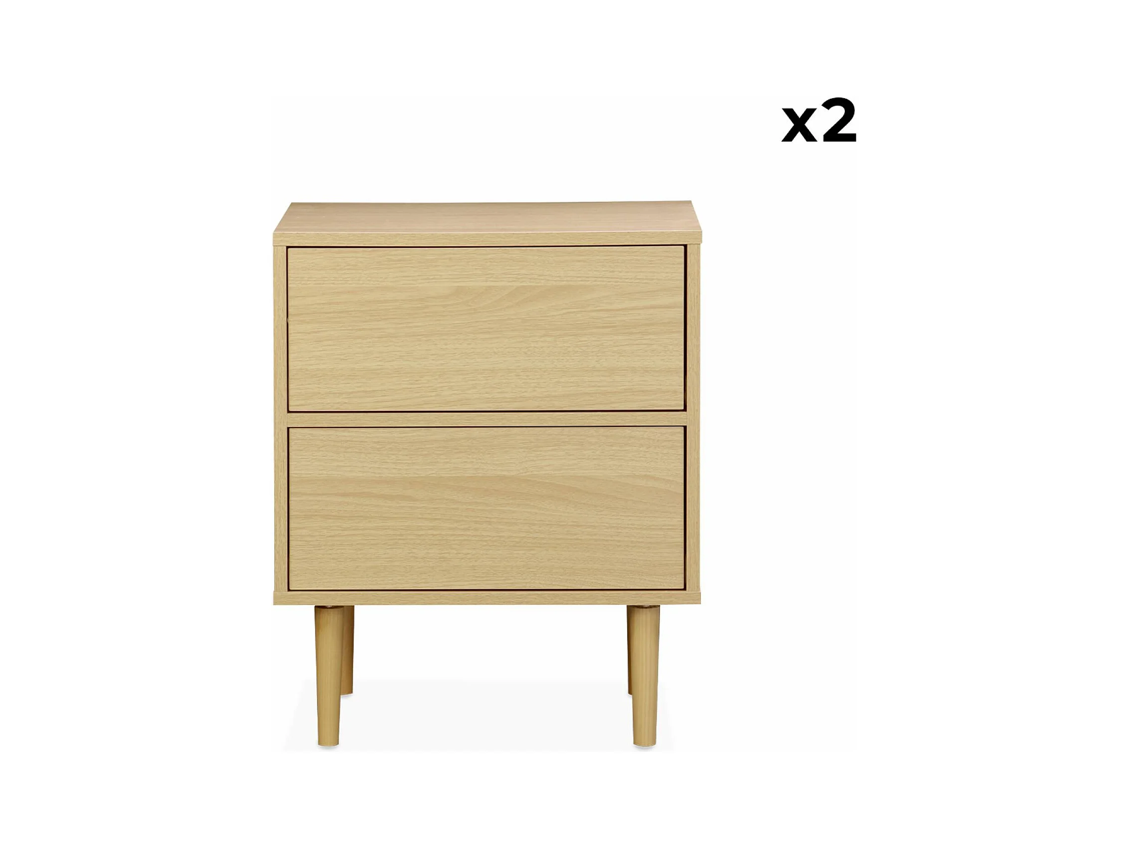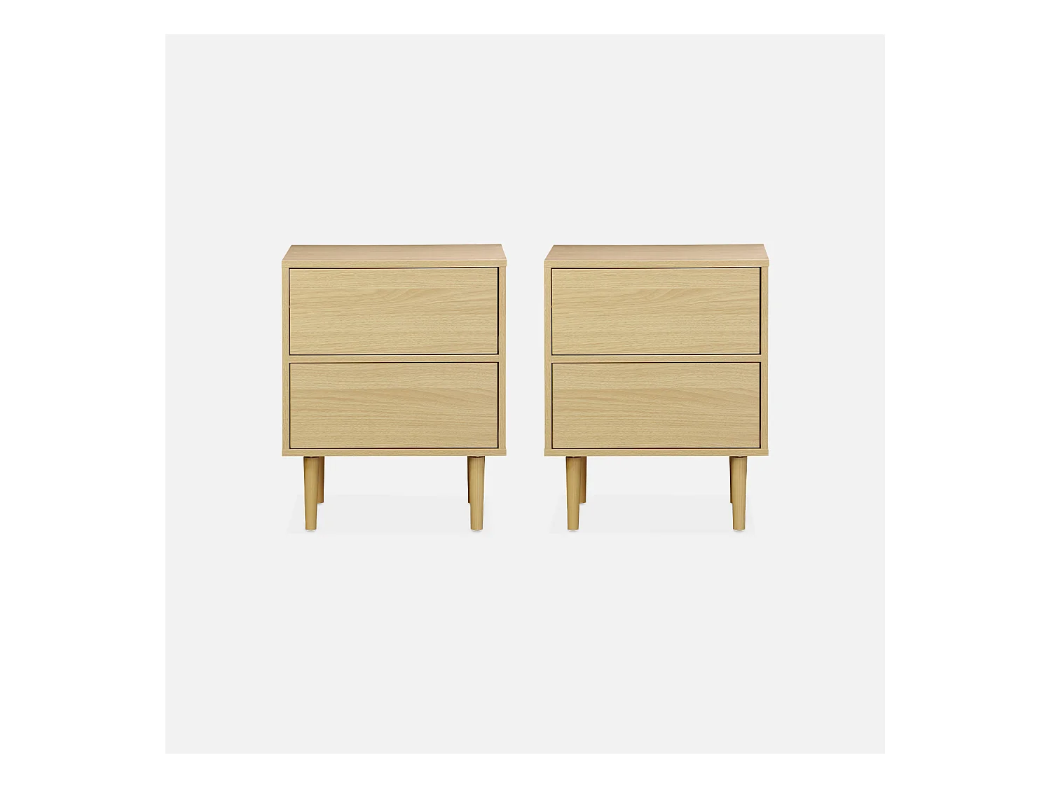 Set 2 comodini effetto legno con due cassetti, marrone naturale