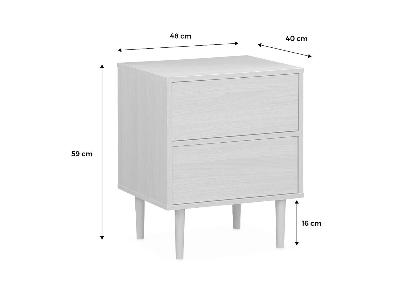 Comodino impiallacciato in legno d'abete con 2 cassetti