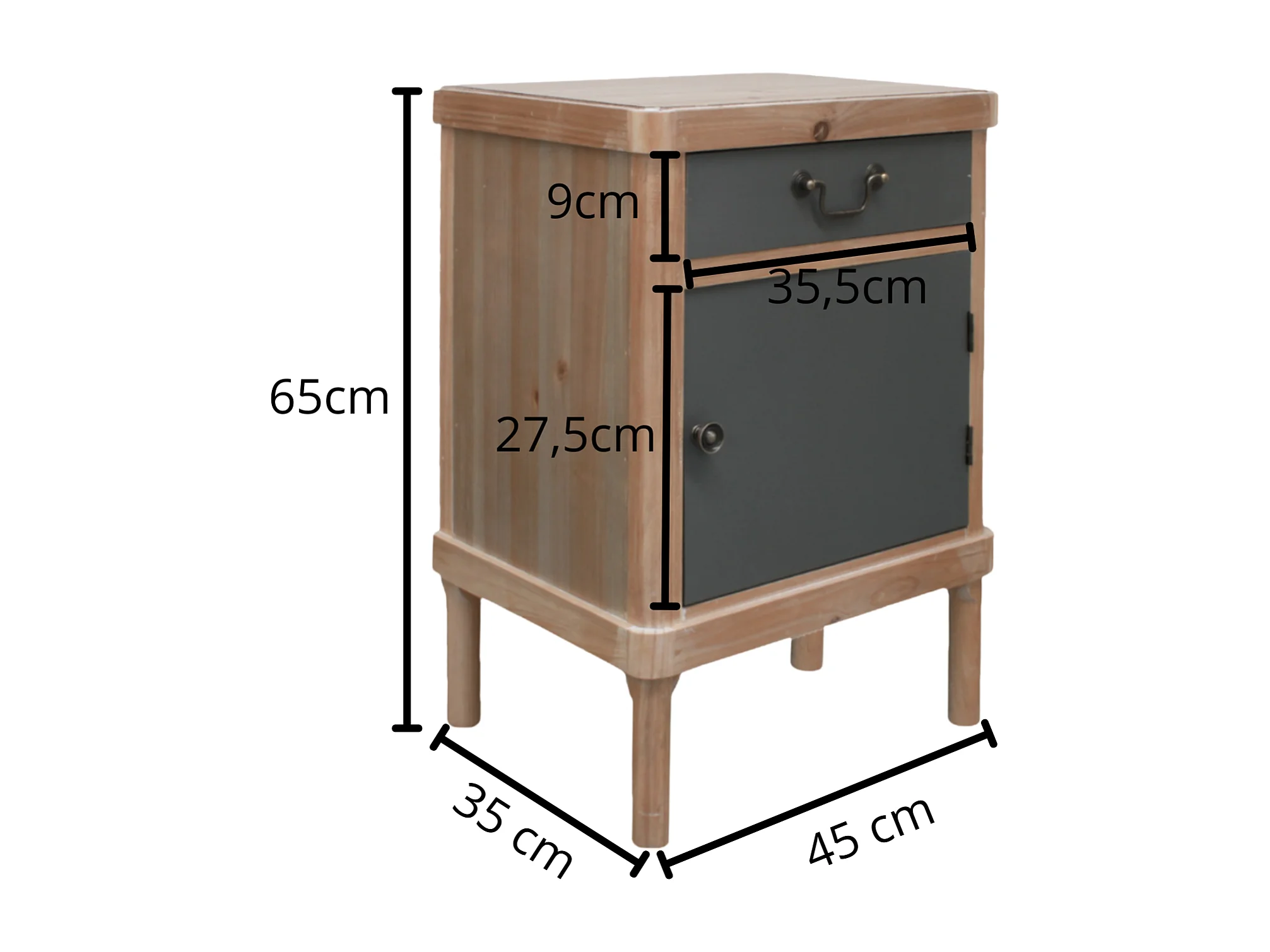 Comodino 40x35x50 cm in legno massello di mango