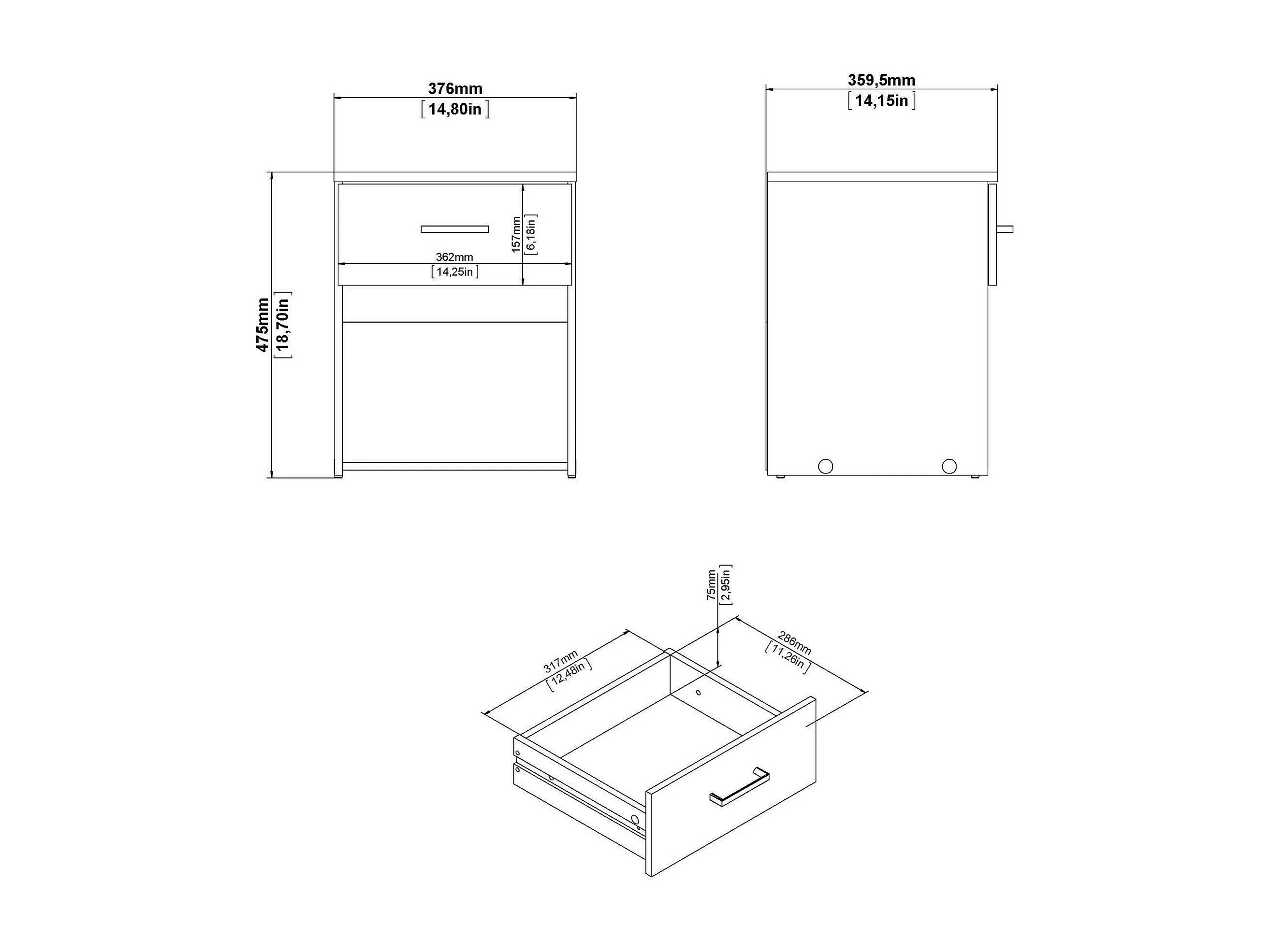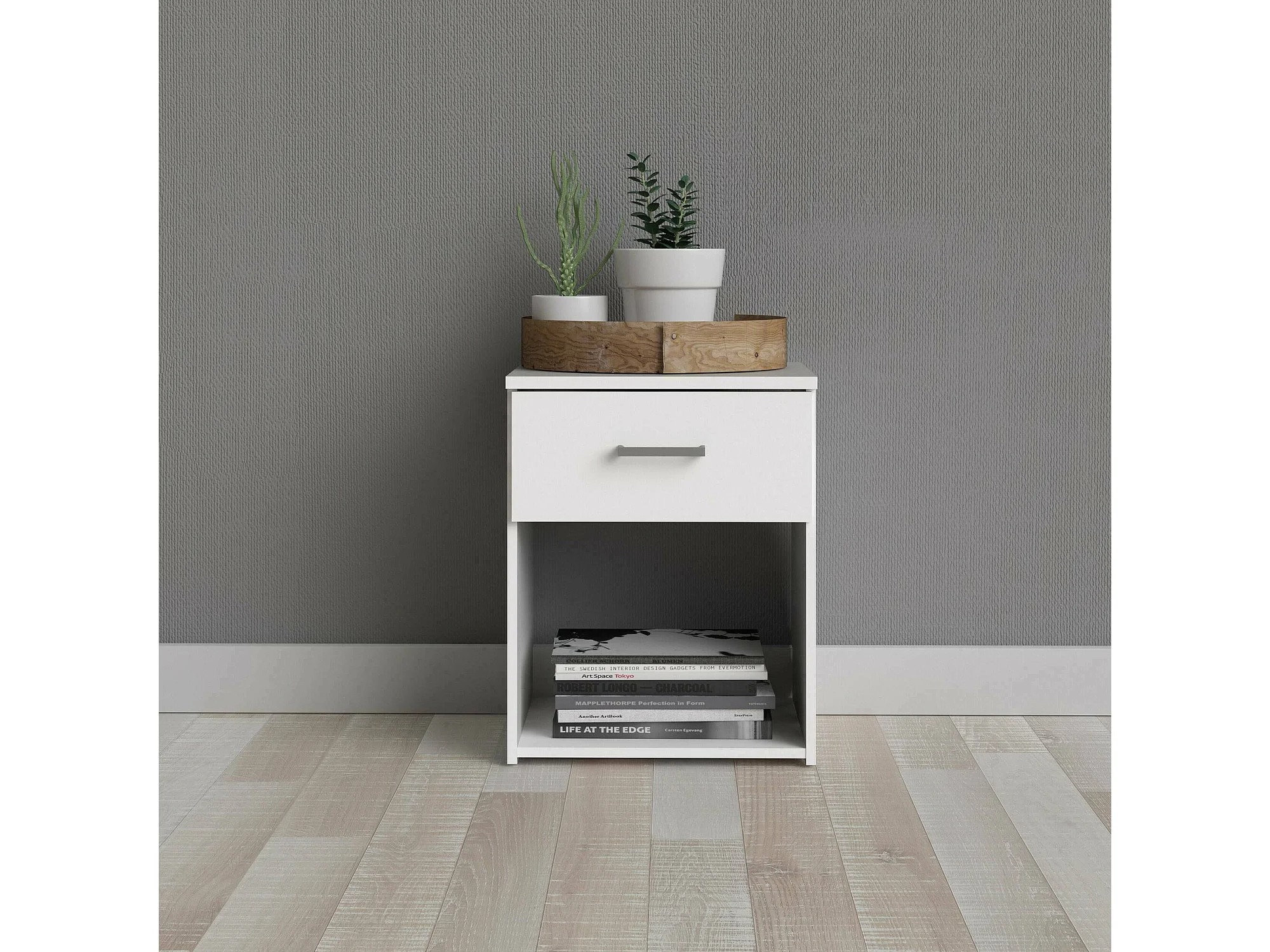 Comodino Pascal, un Cassetto, 43.3x47.8x63.4h cm Bianco