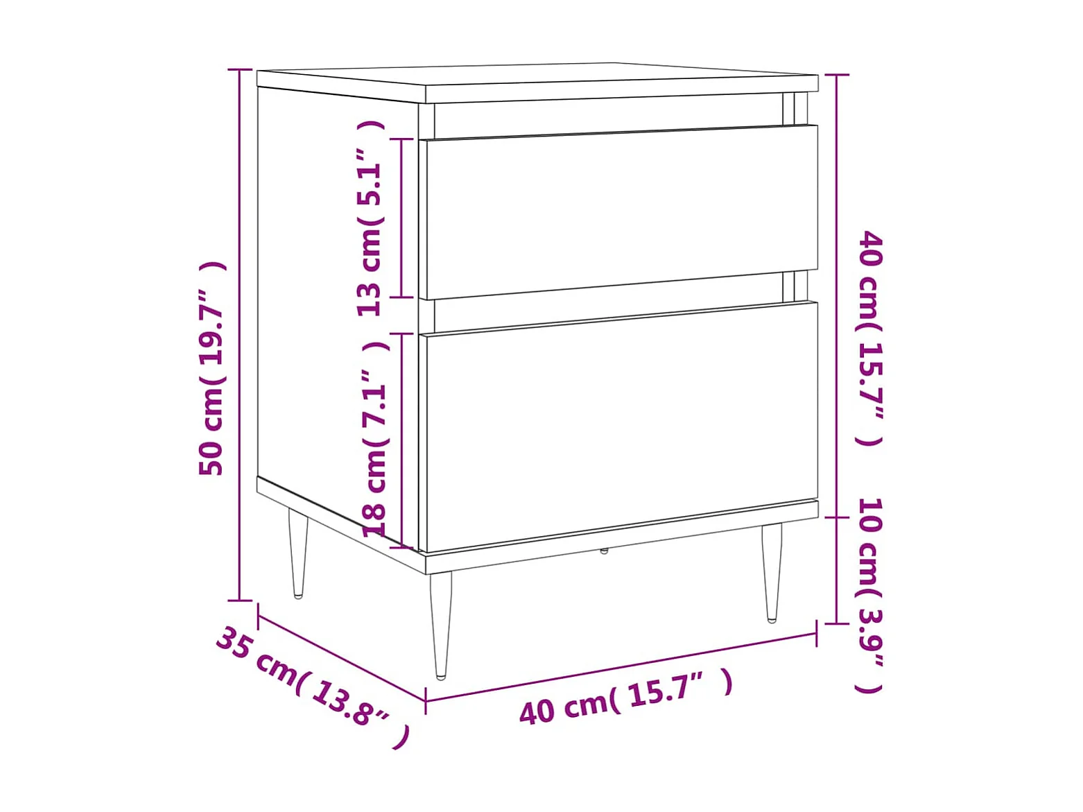 Comodino Grigio Cemento 40x35x50 cm in Legno Multistrato