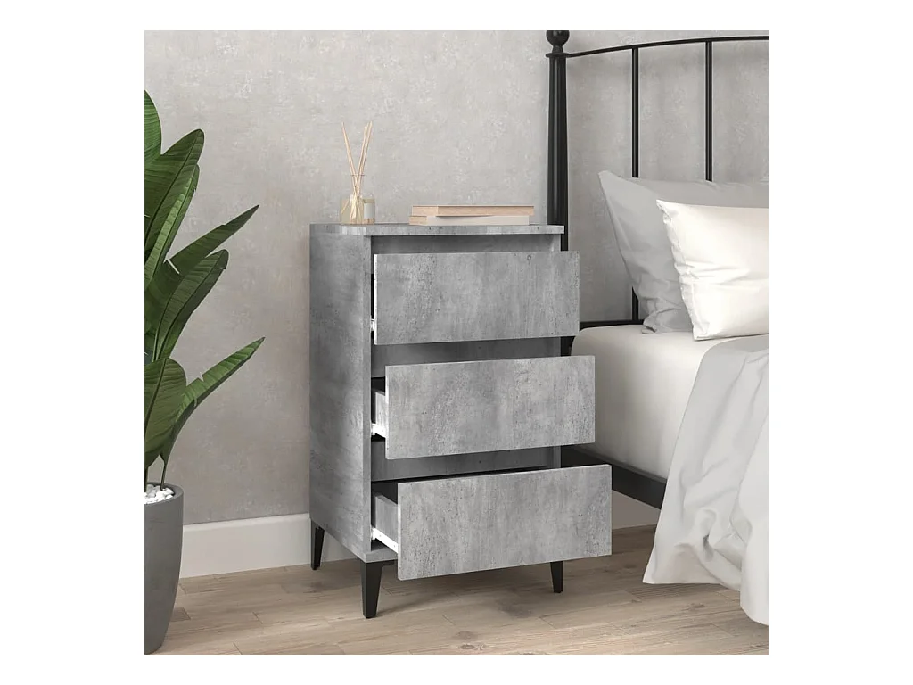 Comodino con gambe in legno massello, grigio cemento, 40x35x69cm