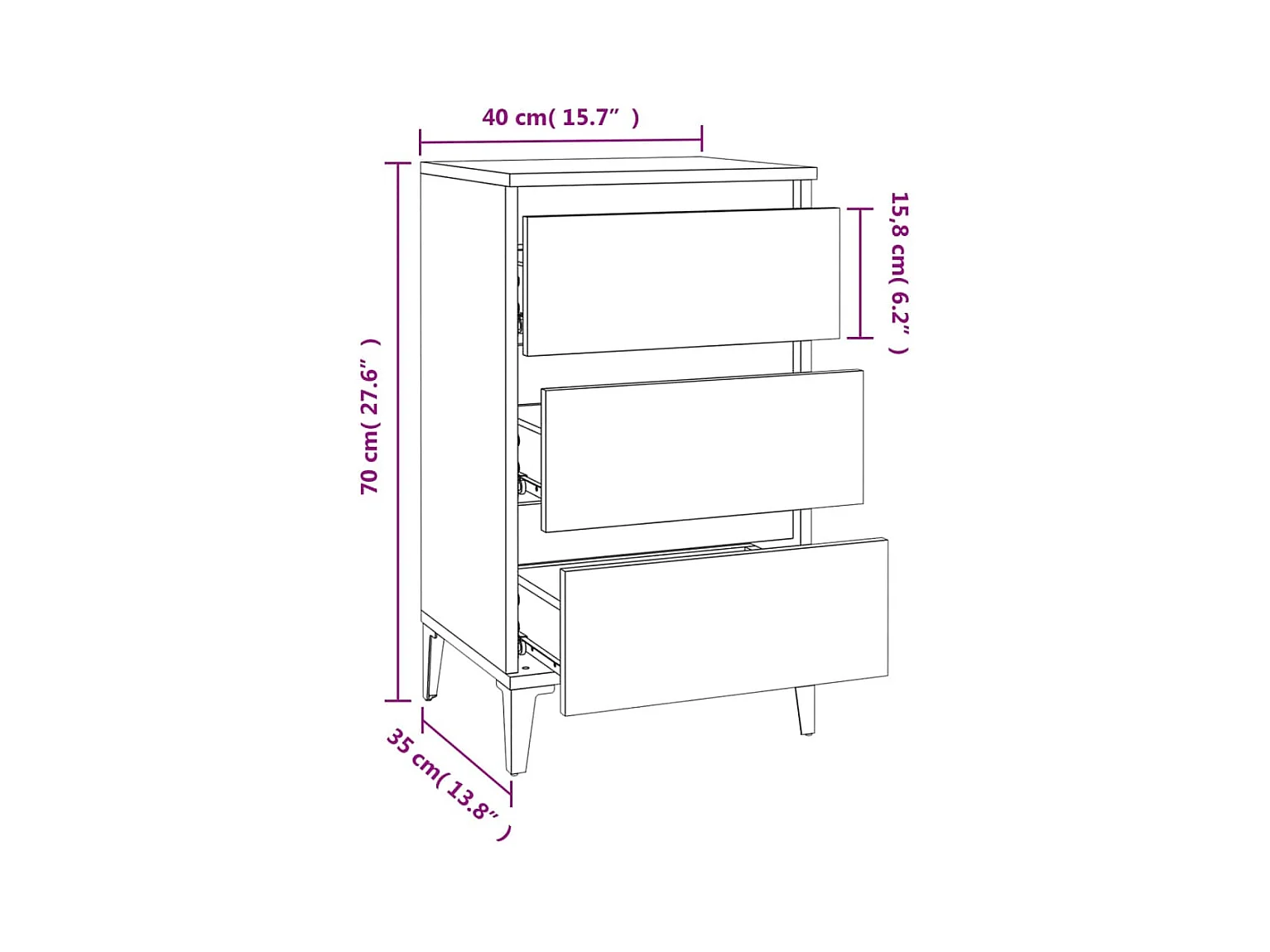 Comodino con gambe in metallo grigio Sonoma 40x35x69 cm