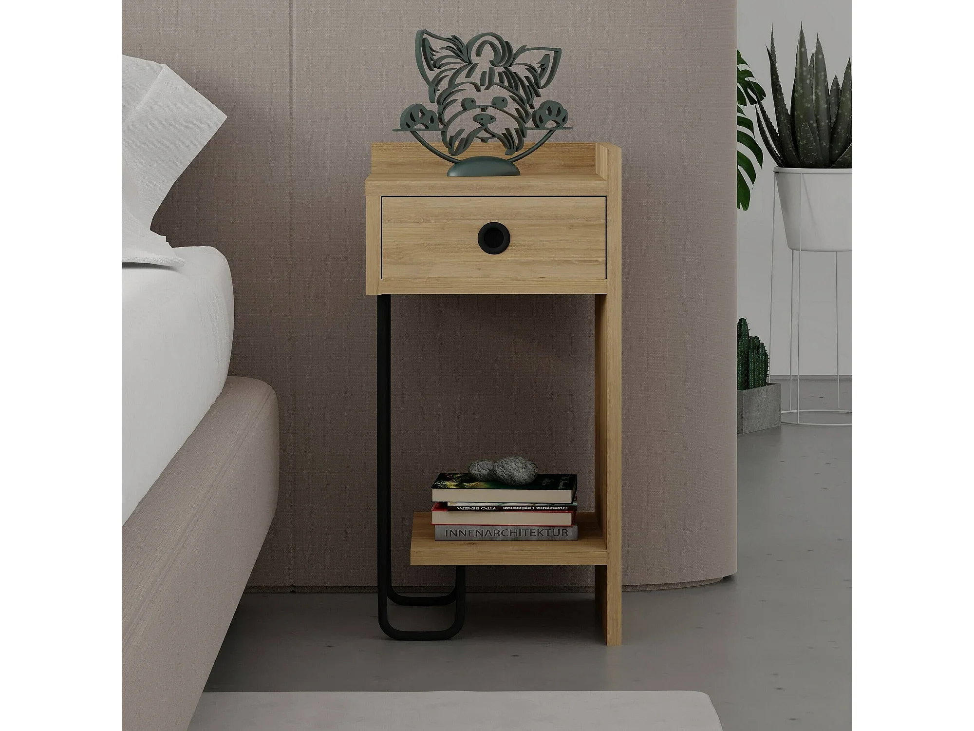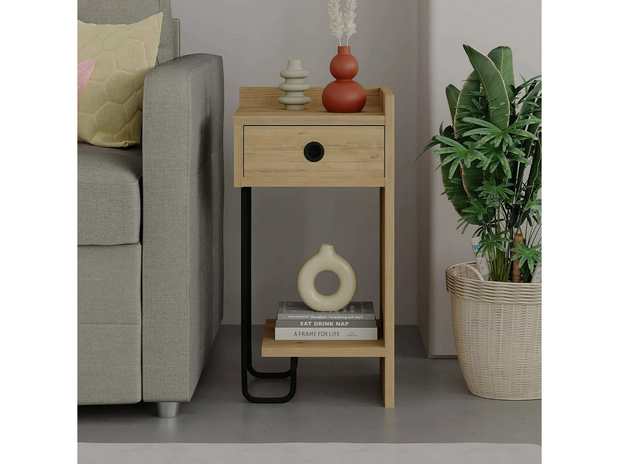 Comodino Halola, un Cassetto, 30x32x61h cm Marrone Quercia